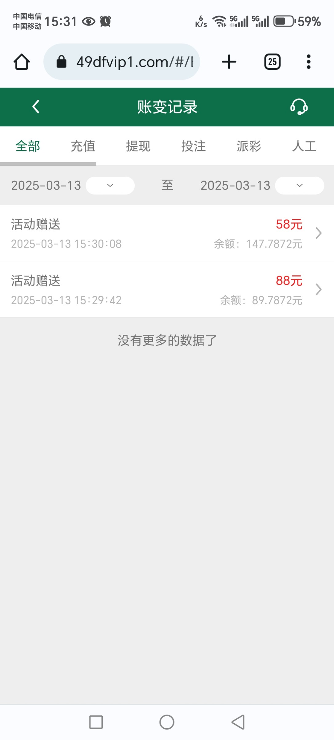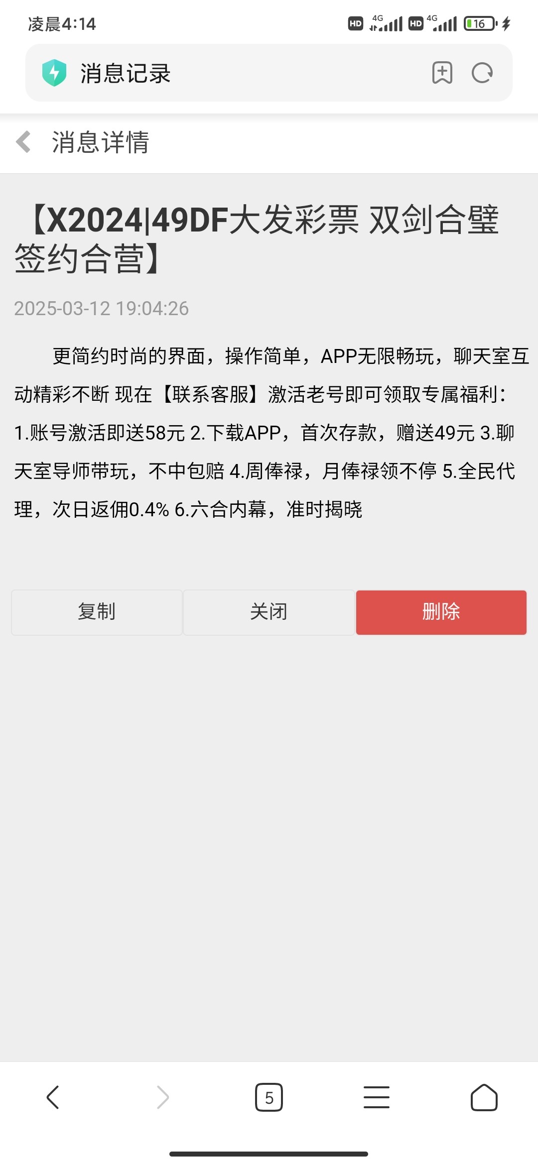 x2024站内信看到的,找49DF客服激活送了58,实测秒到,提款几分钟就到账了