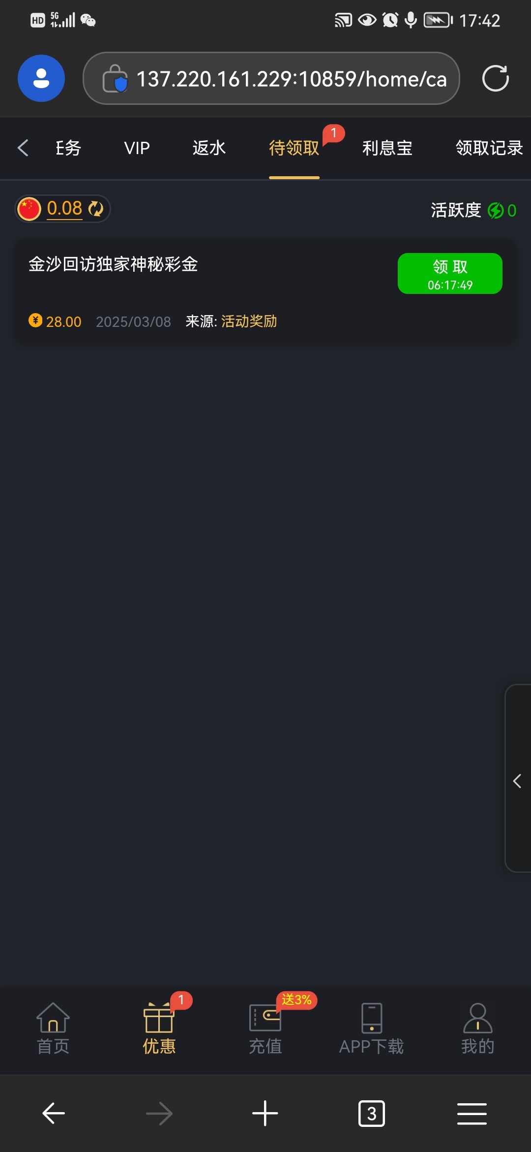 有号的都去看看,我两个号,都没充值过,都领到了,出款的老哥来个反馈 地址 9018.com