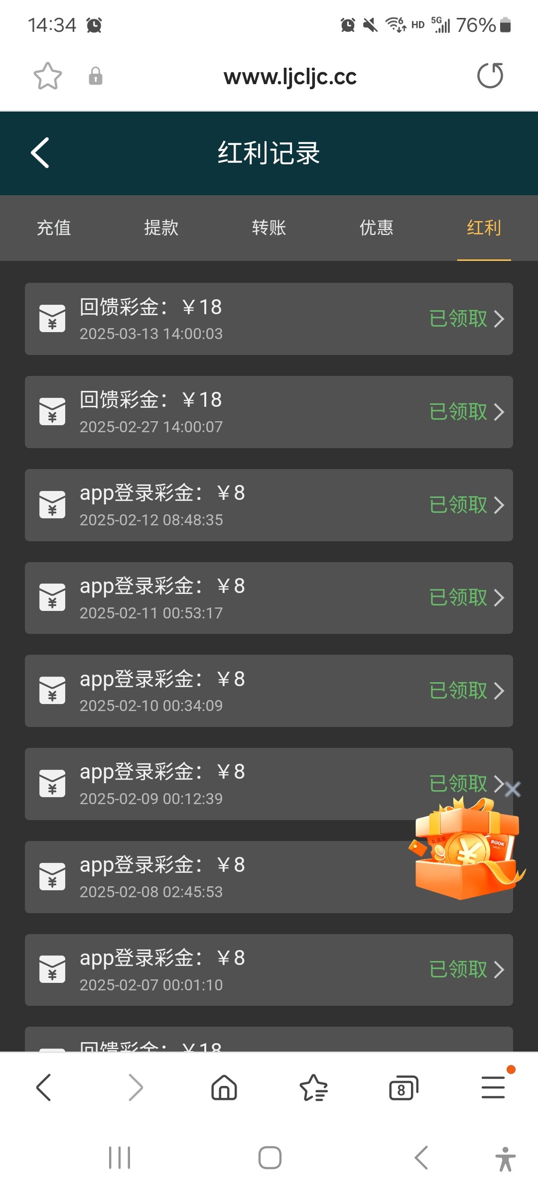 经常充值,隔三差五的就有回馈彩金!