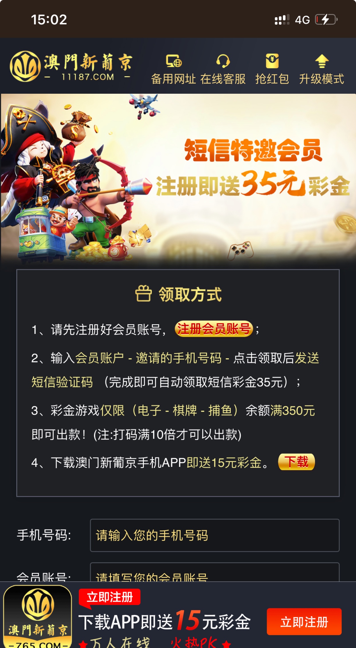新老用户下方链接自助申请35彩金,特邀碰瓷自测吧,下载APP送15彩金。