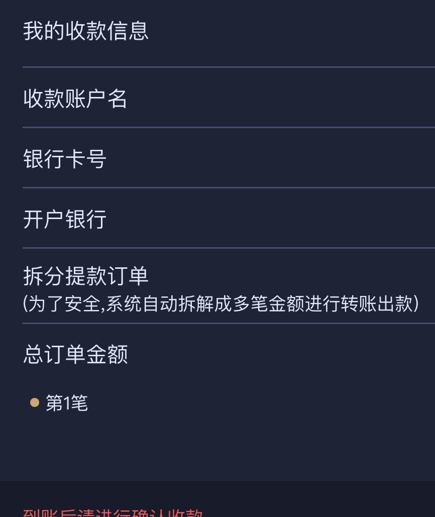 他这逼提款页面设计的跟其他平台都不一样,我设置了虚拟币账户提款出来页面还tm是银行卡提款,我一不注意点提款了,结果还是分笔来的还无法取消,我真是操了。我这个是社保卡,会出事吗老哥们