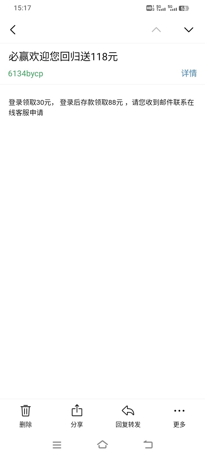 https://zqbhfu.ss6134.com/mobile/#/ucenter/index 这是官网链接,有号的看看邮箱回归直接给30,充值还有88,我没黑过,不建议充值,黑了别找我