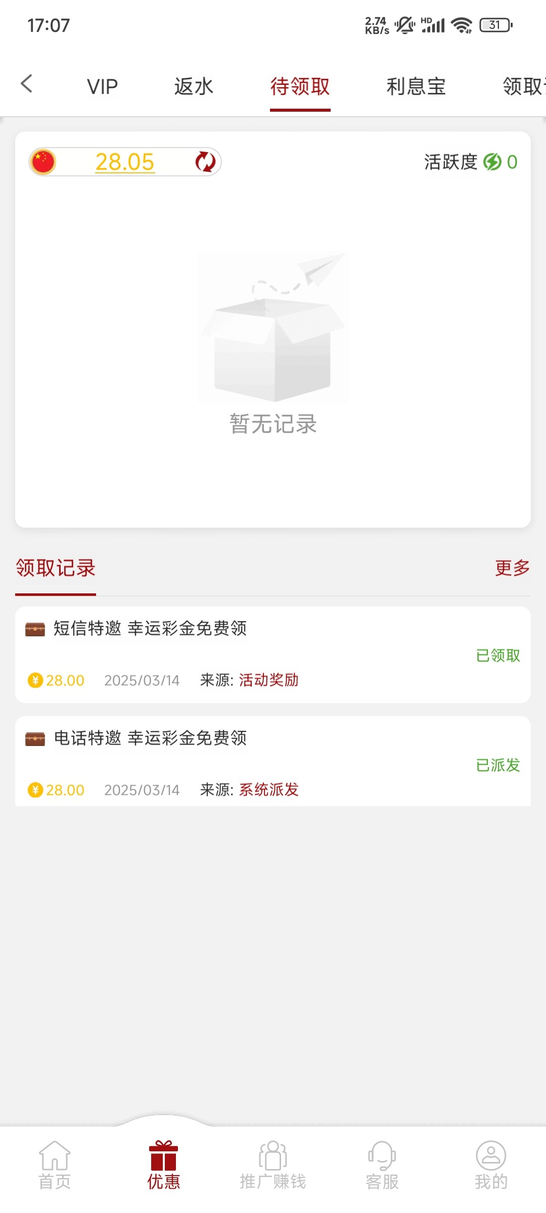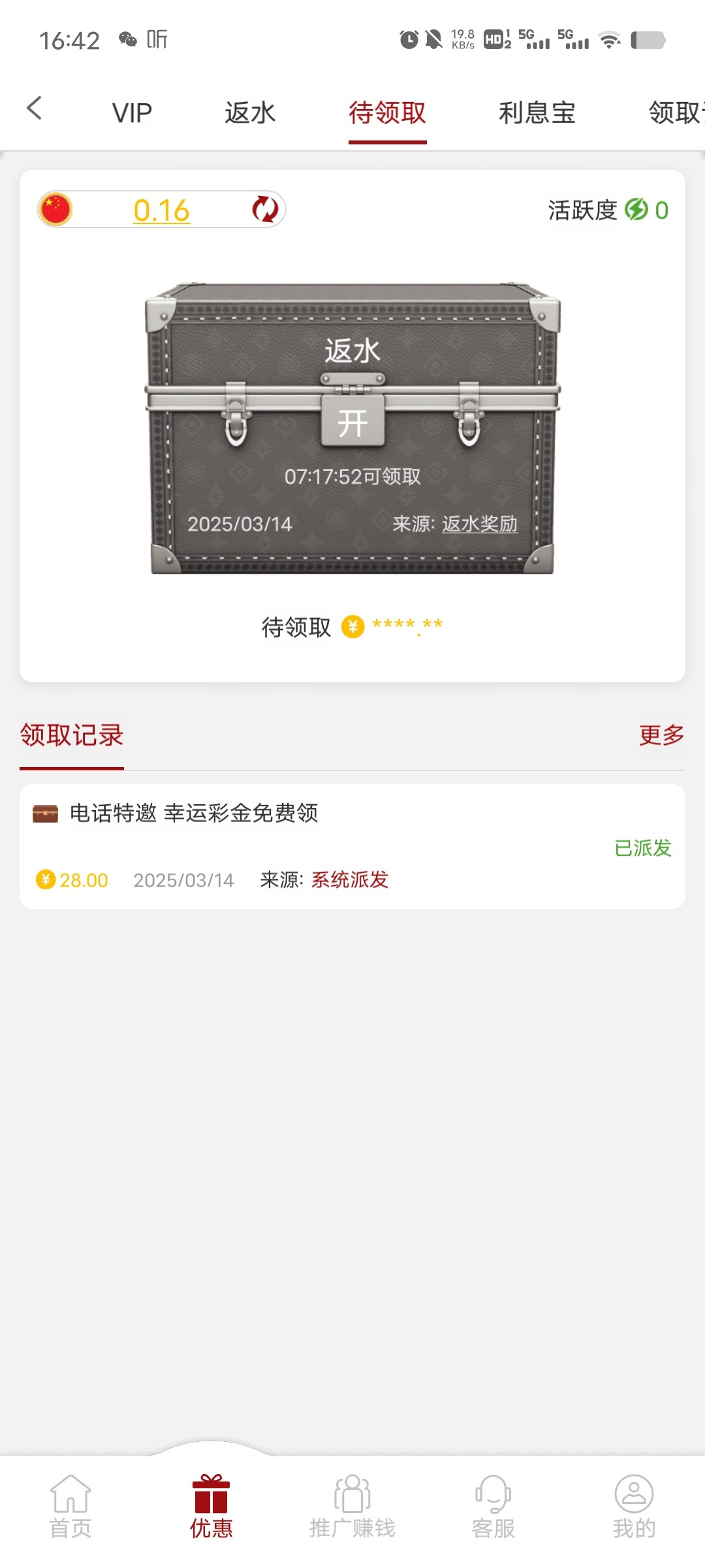 之前领了28彩金,没打出来,过了一会反诈就打电话了