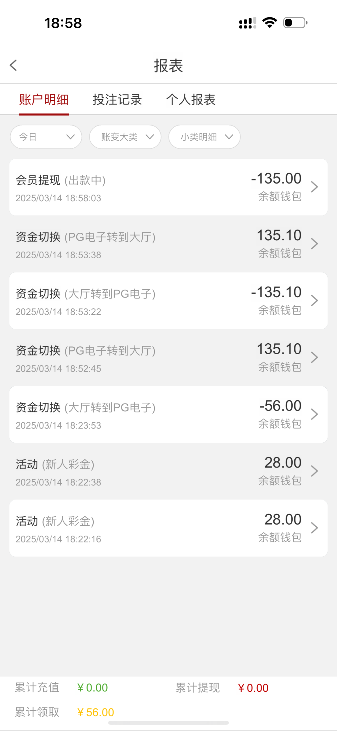 这傻逼台子,妈的,充值50,结果就给了23总共投注73.6,是真黑啊,全空转