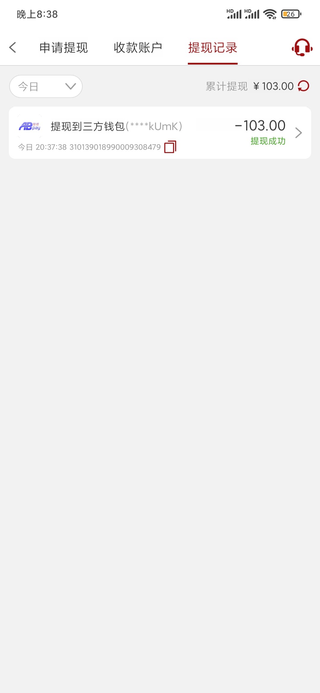 几分钟就出款了 只能提ab 我怕提不出来 输得差不多提的