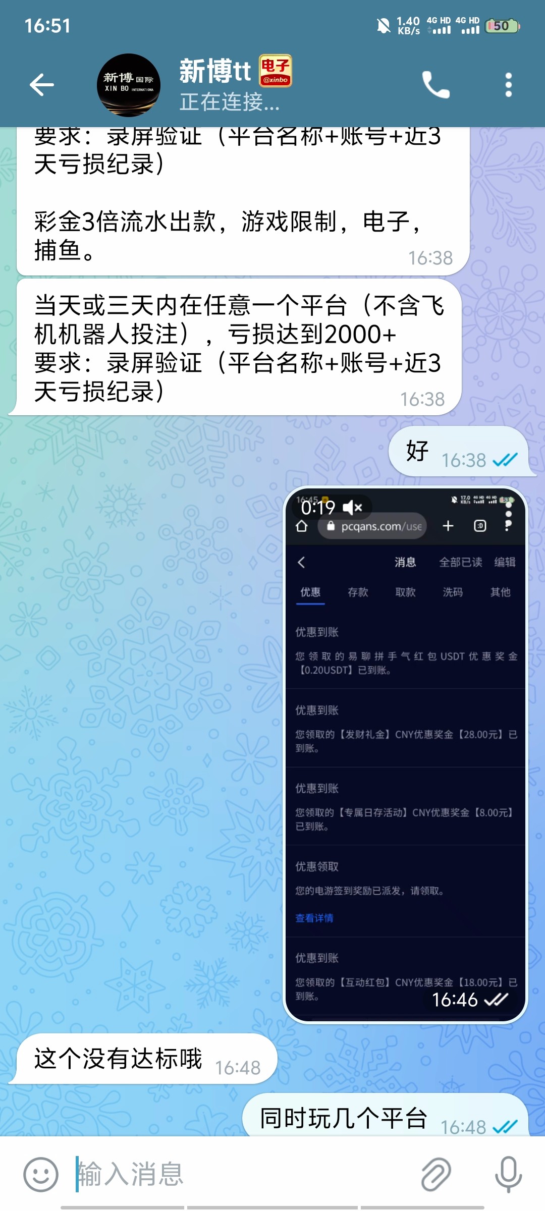 飞机客服链接https://t.me/xinbott 最近有亏损2000以上的录屏领取58元彩金