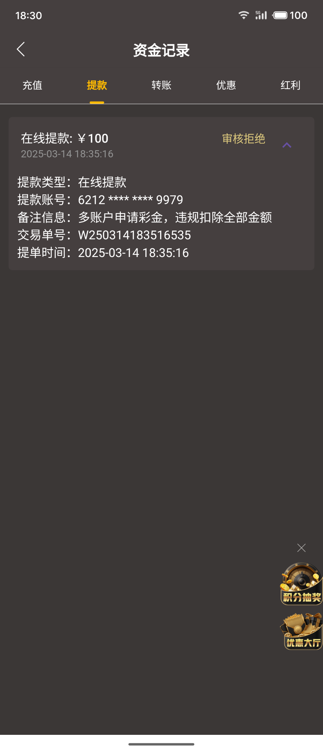 ✅已经处理200个名额批量派发了,到优惠大厅---彩金红包内点击领取。 如果有会员领取不了,就是系统判定多IP的(如图),祝领到的老哥们长虹了