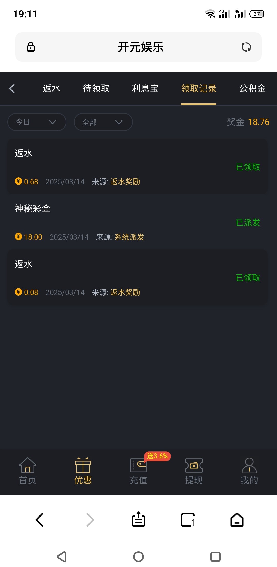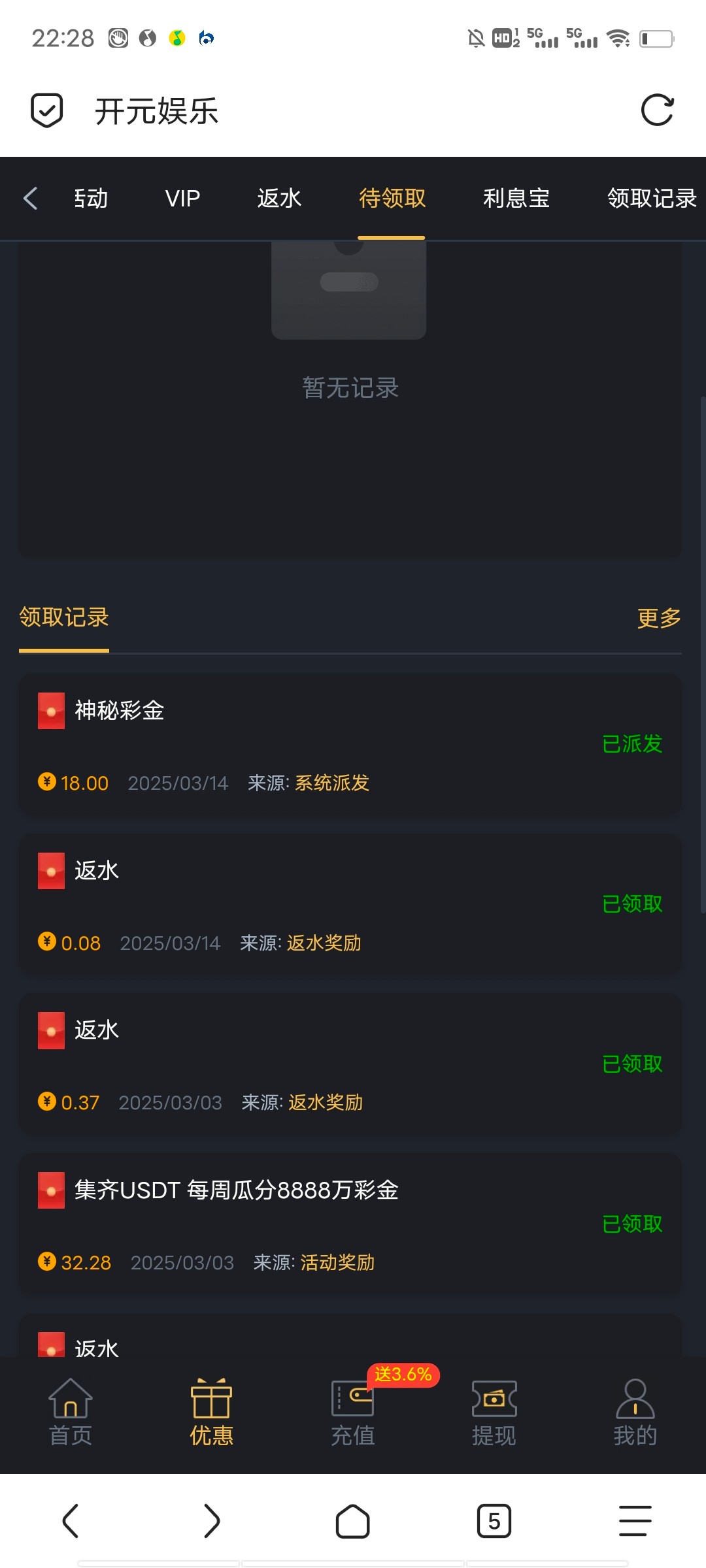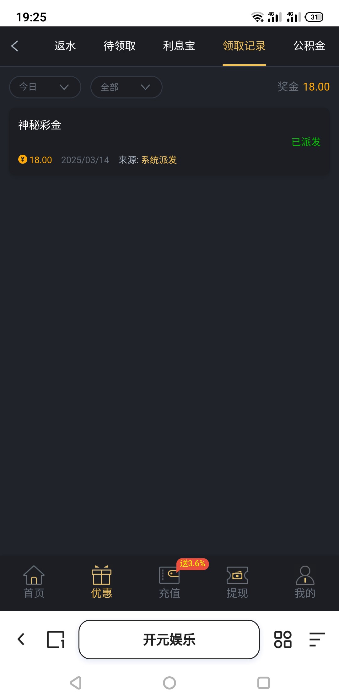 领到了,这几天没少领彩金288的都领过两个,一个都没出,说来也奇怪,有时候天天出款4块钱都能出几百,有时候几百块都赢不了,跟大姨妈一样每个月总有那么几次,希望这个可以拿下