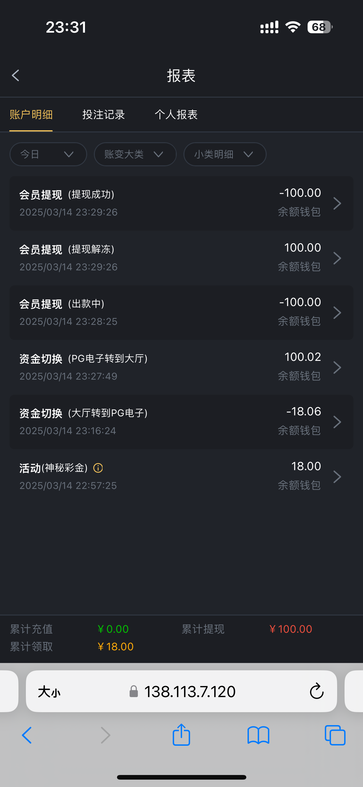 控分控的要死,18愣是打了800的流水,还了7/8个游戏,总算给我磨出来了100,提了100,累个半死