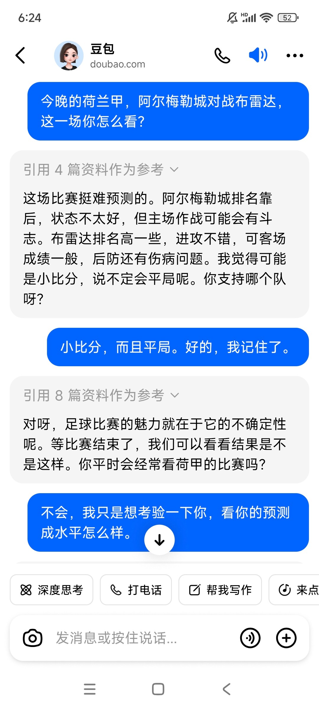 问了三场顶级联赛的比赛,荷甲西甲两场完全正确还有一场法甲没给明确的答案,总体感觉ai挺准 有没有老哥通过ai预测赚钱的交流一下