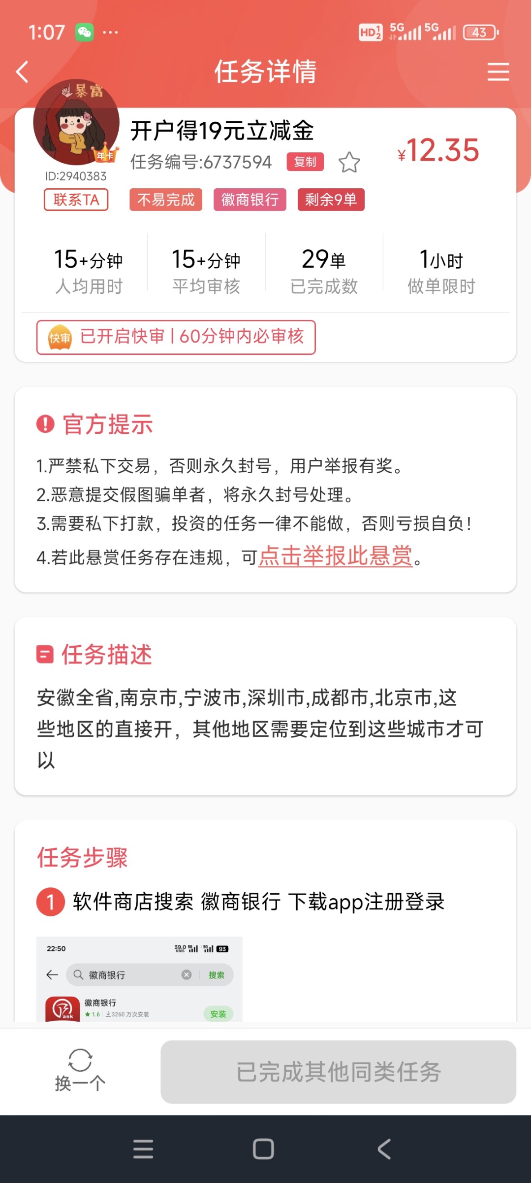 可以先去赏帮赚,或者其他悬赏平台注册做任务开户领悬赏,然后微商银行开户可以领10元立减金跟9元立减金,领了可以去密码红包套出来