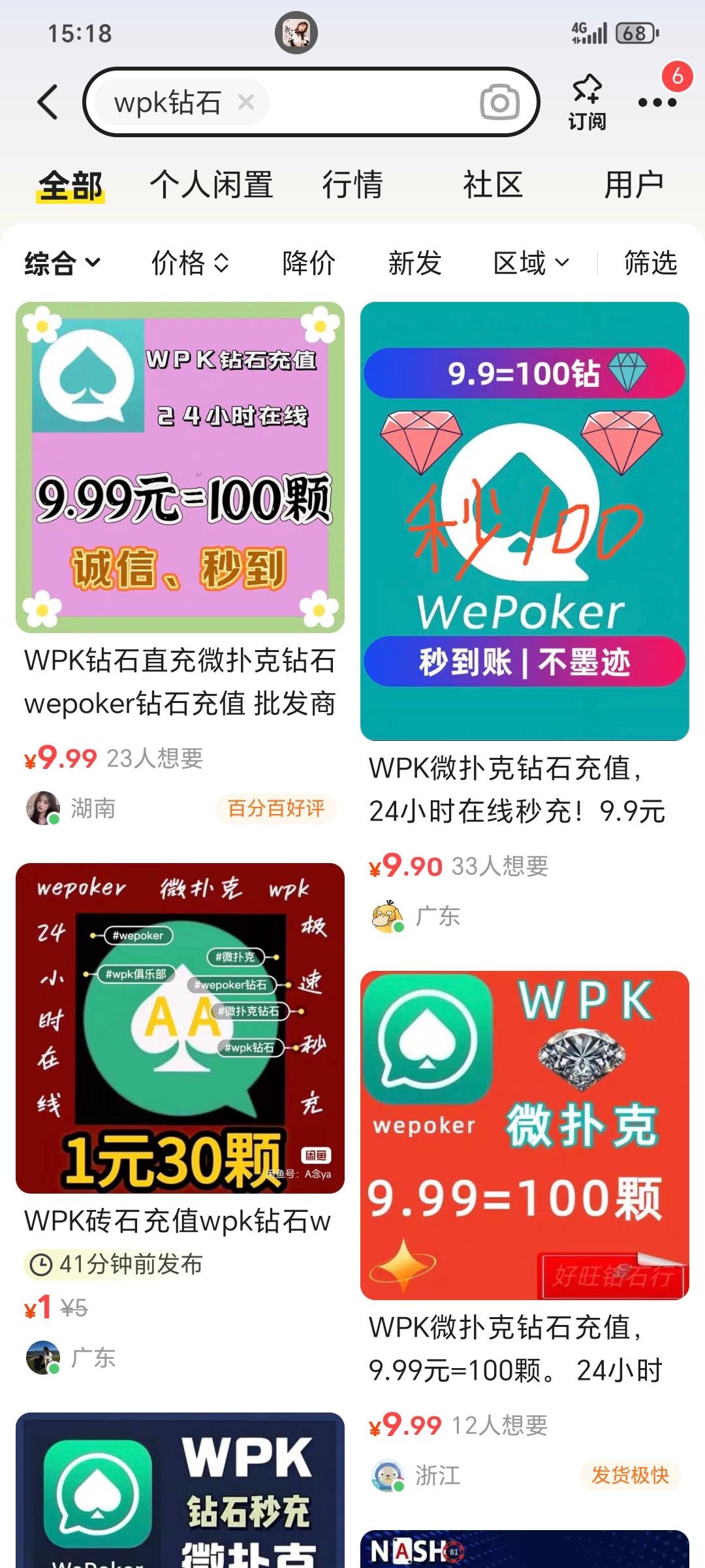 就是下载wpk扑克 用咸鱼进行充值钻石 赢了是利润,输了退款