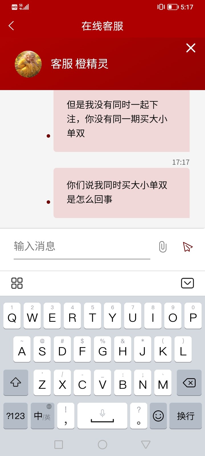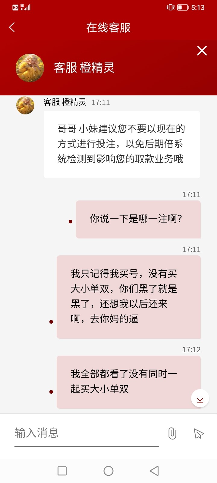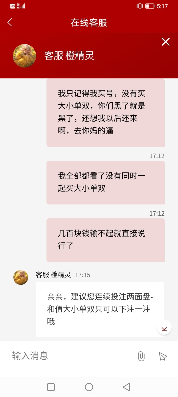 这个平台玩了那么久第一次被这种,特么的我买的是数字客服说我投注大小单双