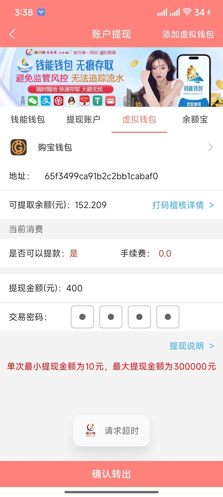 精彩网充值200,提款300,已经打了2000流水,还要5200