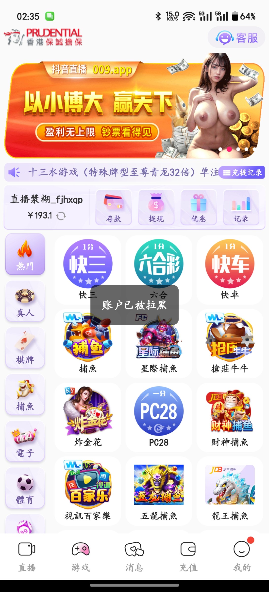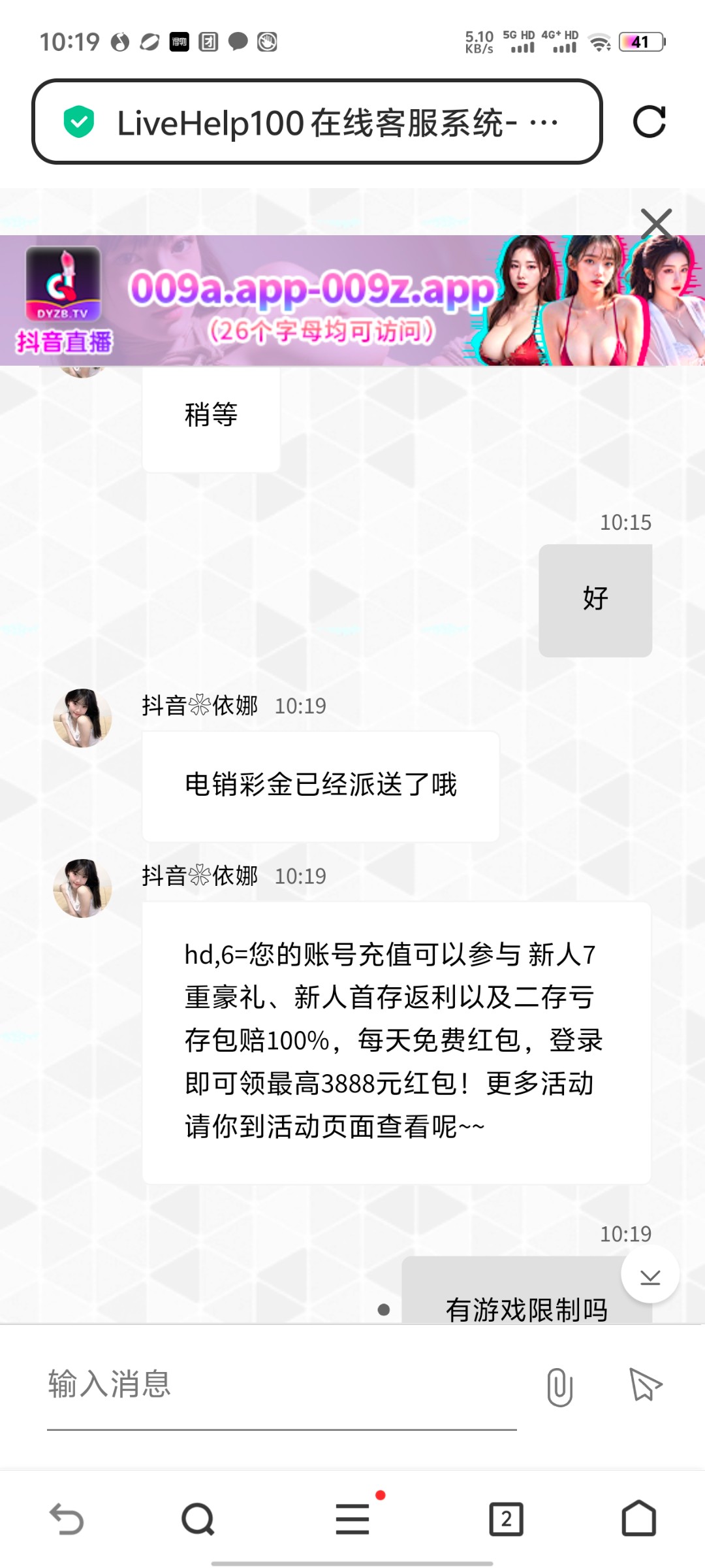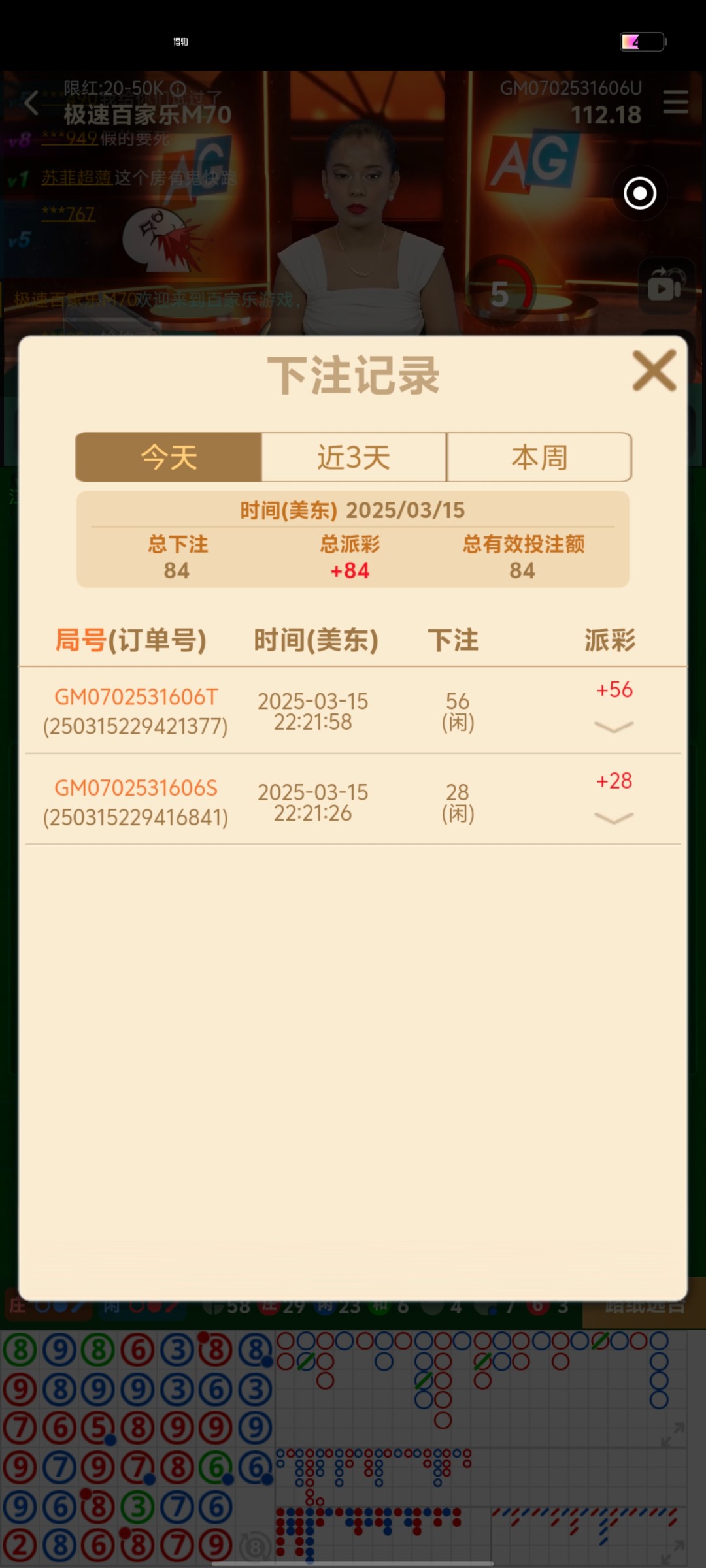 碰瓷28,我纯碰瓷碰到的,没接过电话,百家乐两把直接下100,链接 dyzb.tv