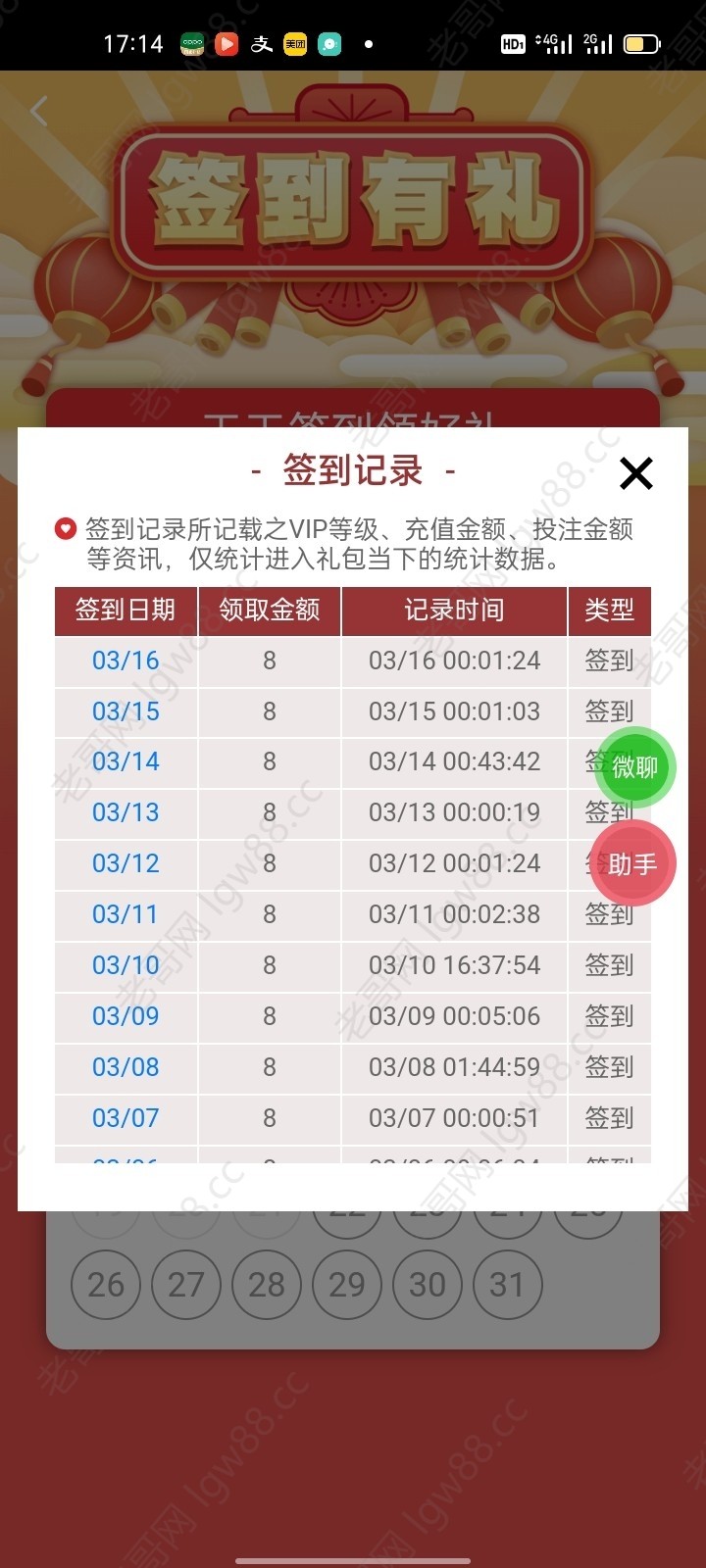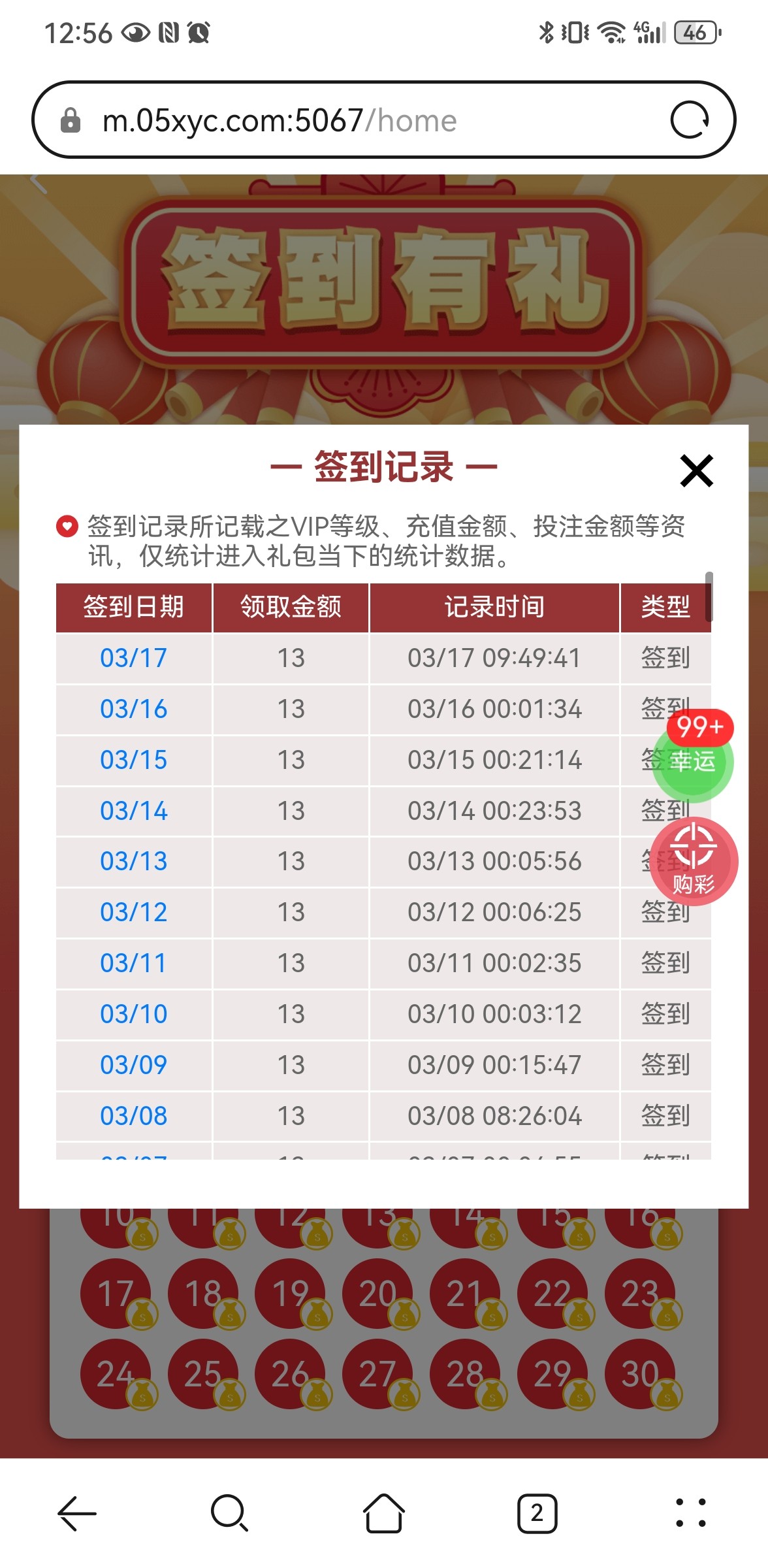 很多中博系列的台子都有这种签到 ,我这两个签到了一年多了,基本上每个星期能白嫖打出来一两次 100 保底了属于是