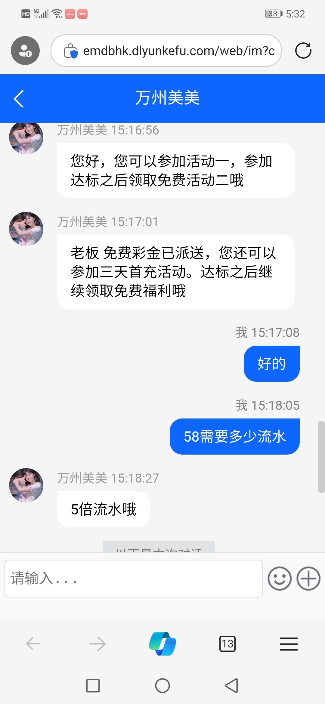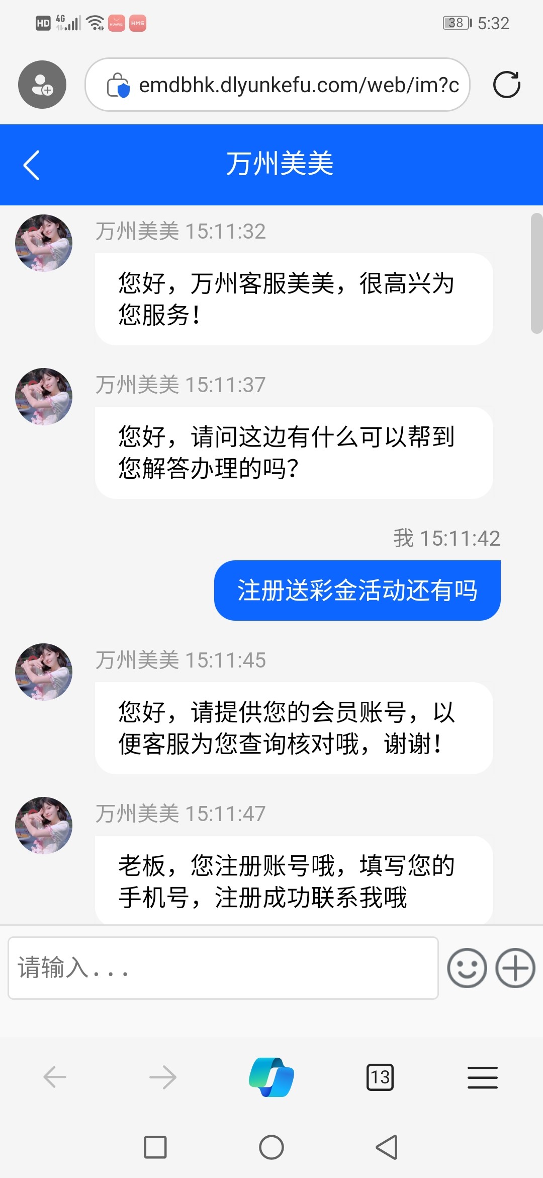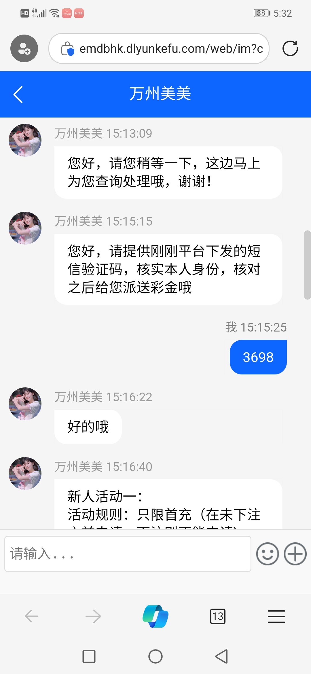 点链接然后先找客服问新人注册彩金还有没有,毕竟帖子发出来很容易冲烂,防止白送人头,发手机号给他会给你发个验证码提供给他,打出来之后随遍绑卡提现,第一次提现他是出款v的,提现提交之后找客服会跟你说,提供微信名实名跟收款码就行了,我打的时候大连了十几手直接出了,老哥们冲