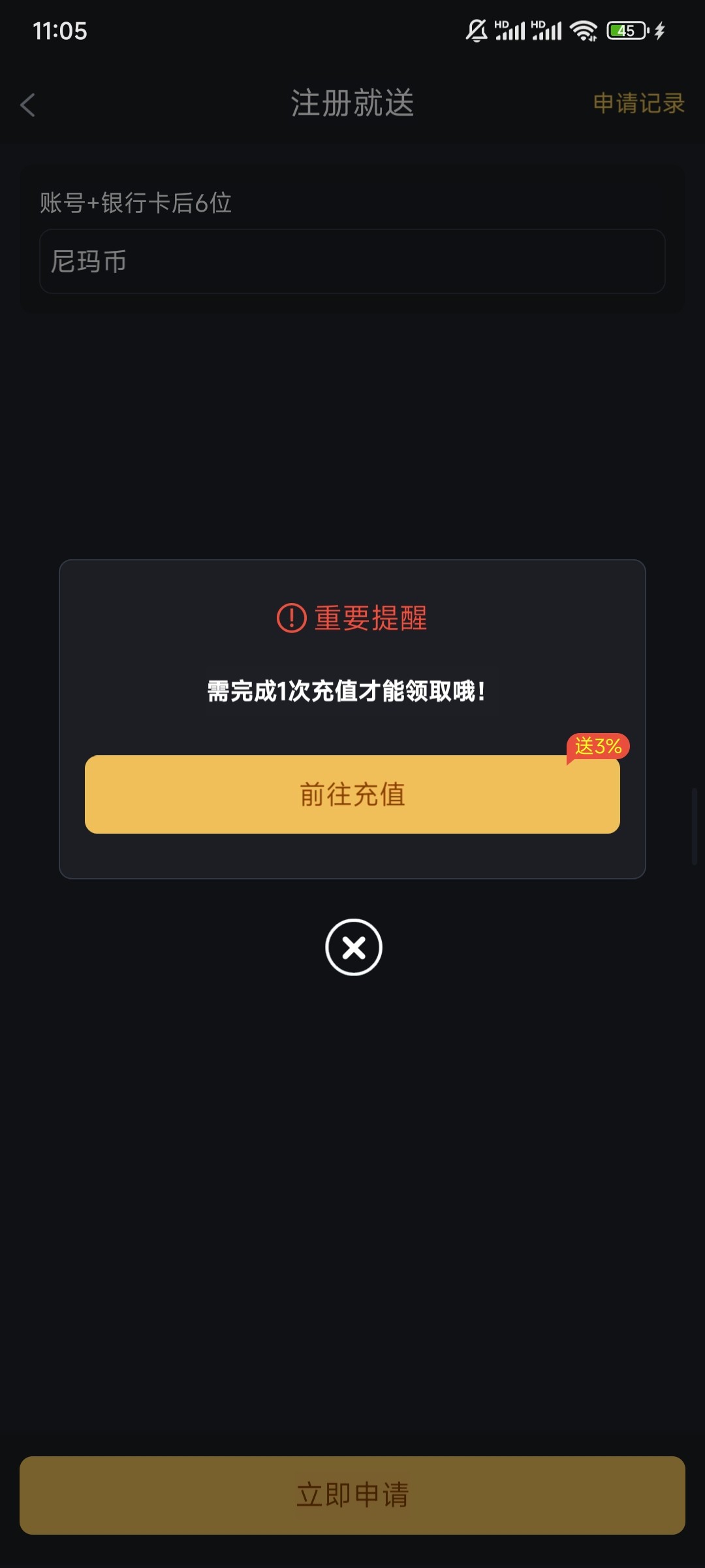 充值申请也是秒拒,问狗杂种客服,说不是app申请的,我说就是APP申请的,后来又改口说不是APP注册的,反正一直重复说这一句话,活动里说注册帐号,下载登陆,那狗东西野鸡台就是忽悠充值不给送