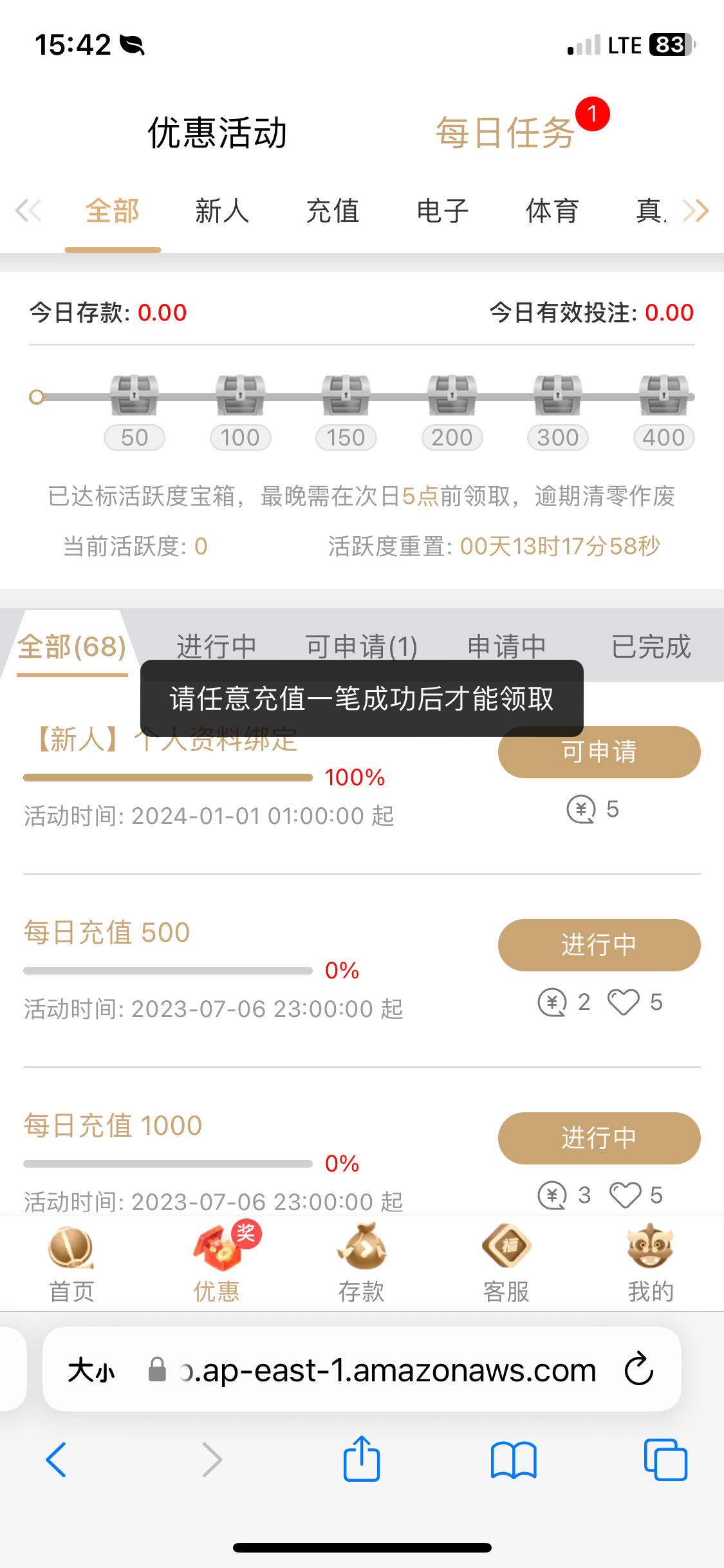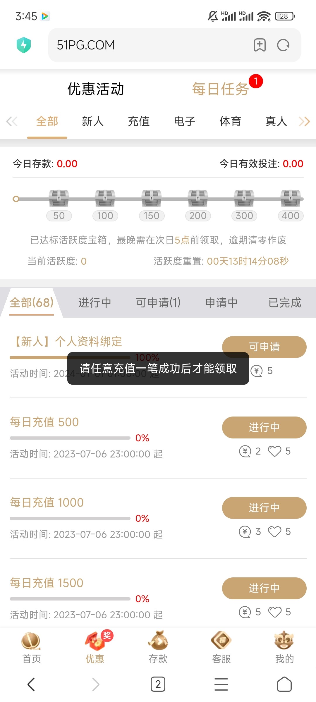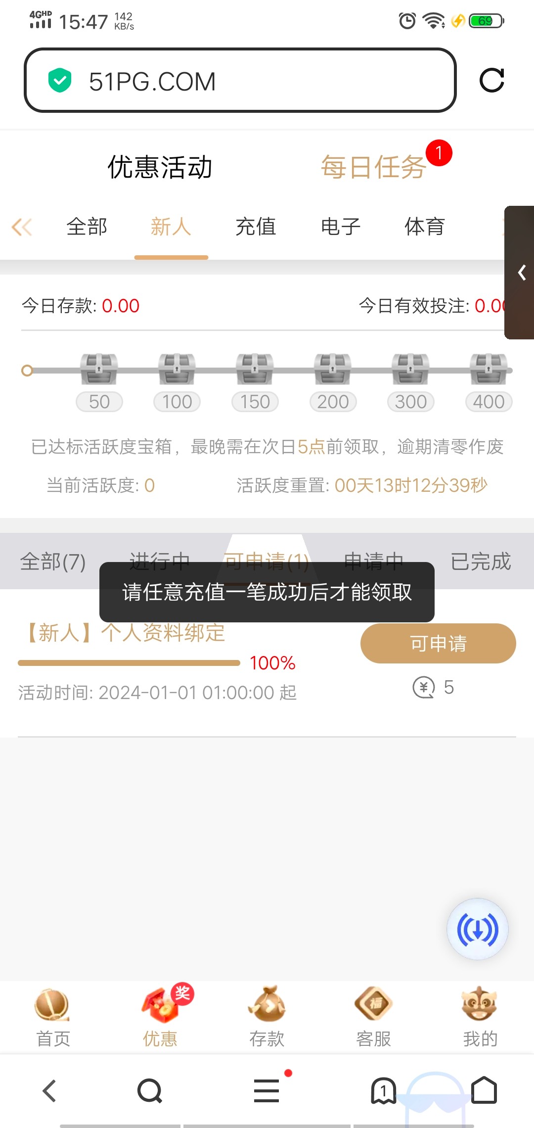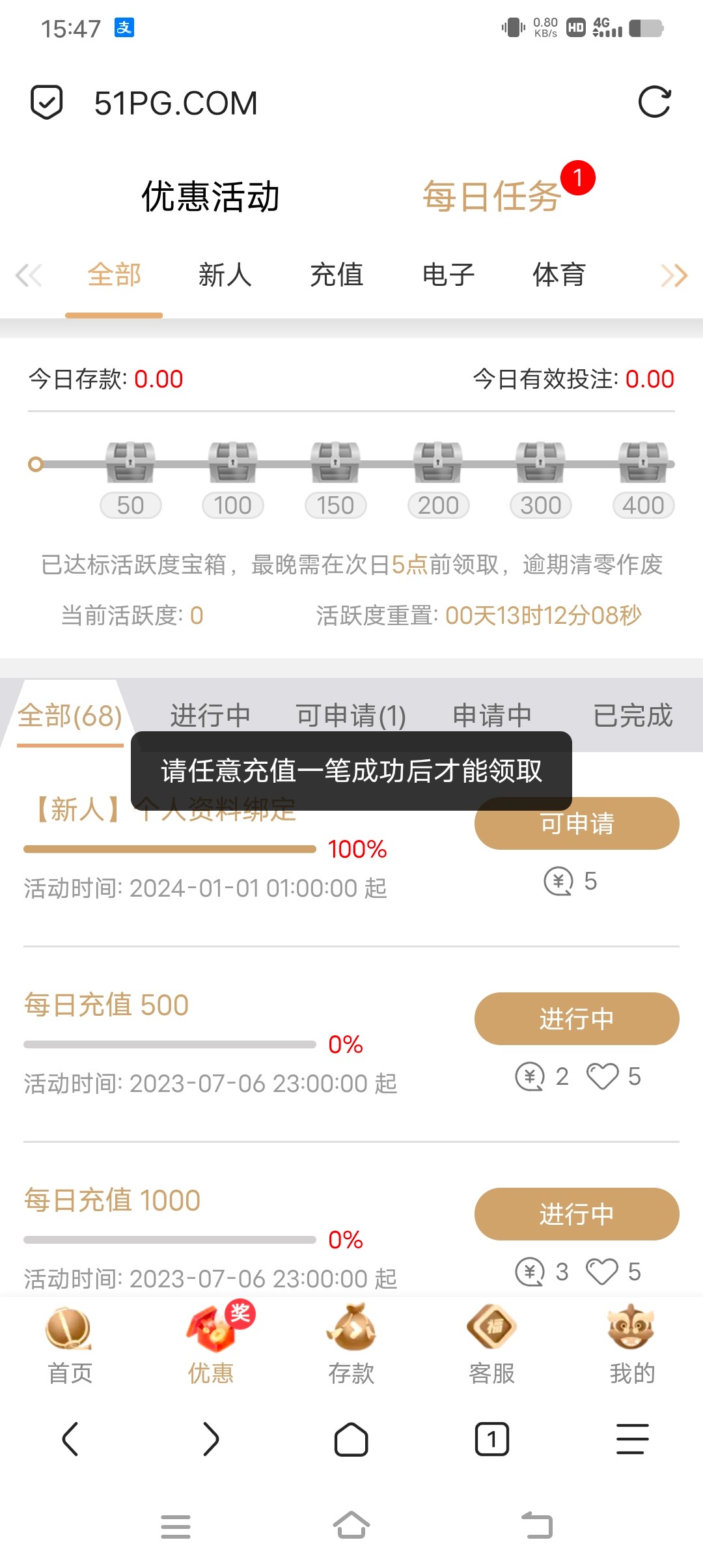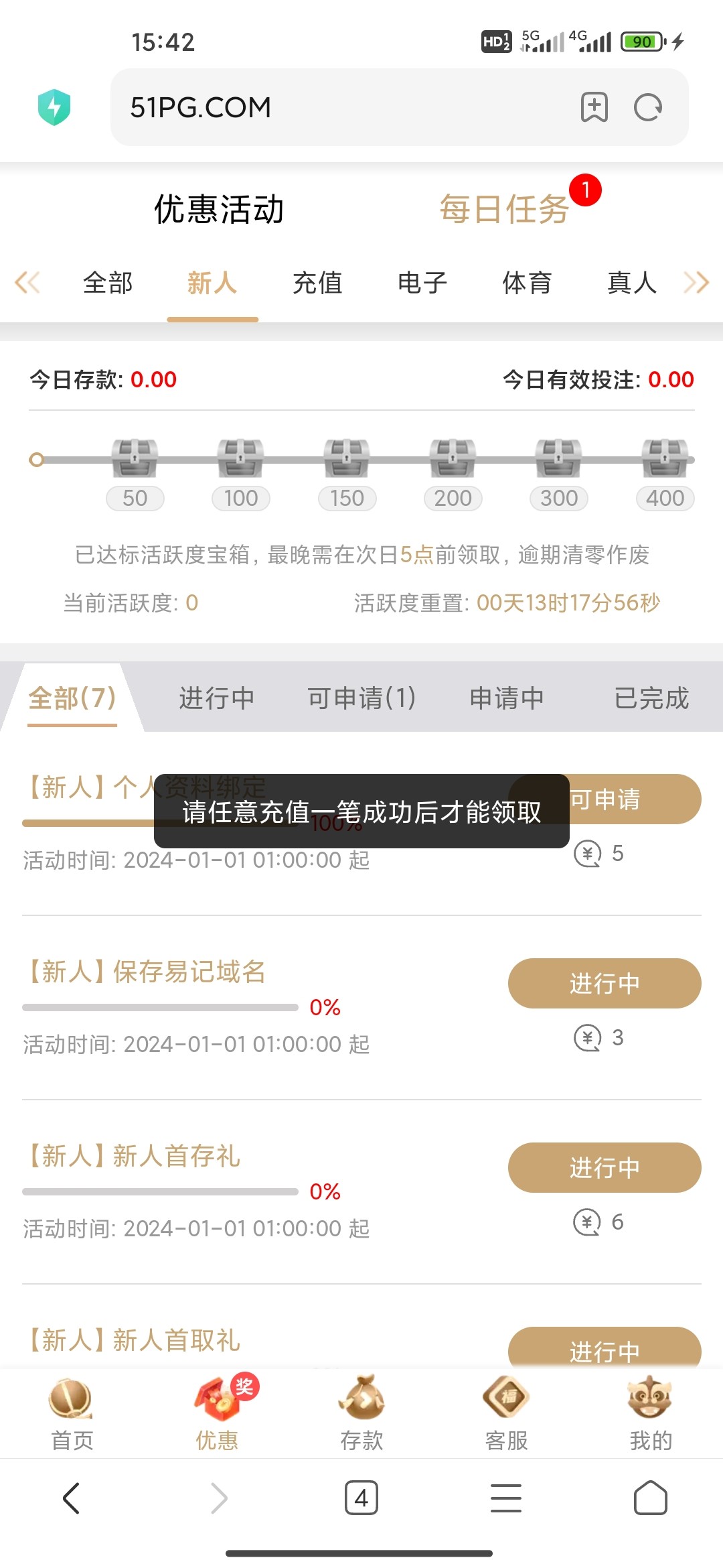 要充值才可以领