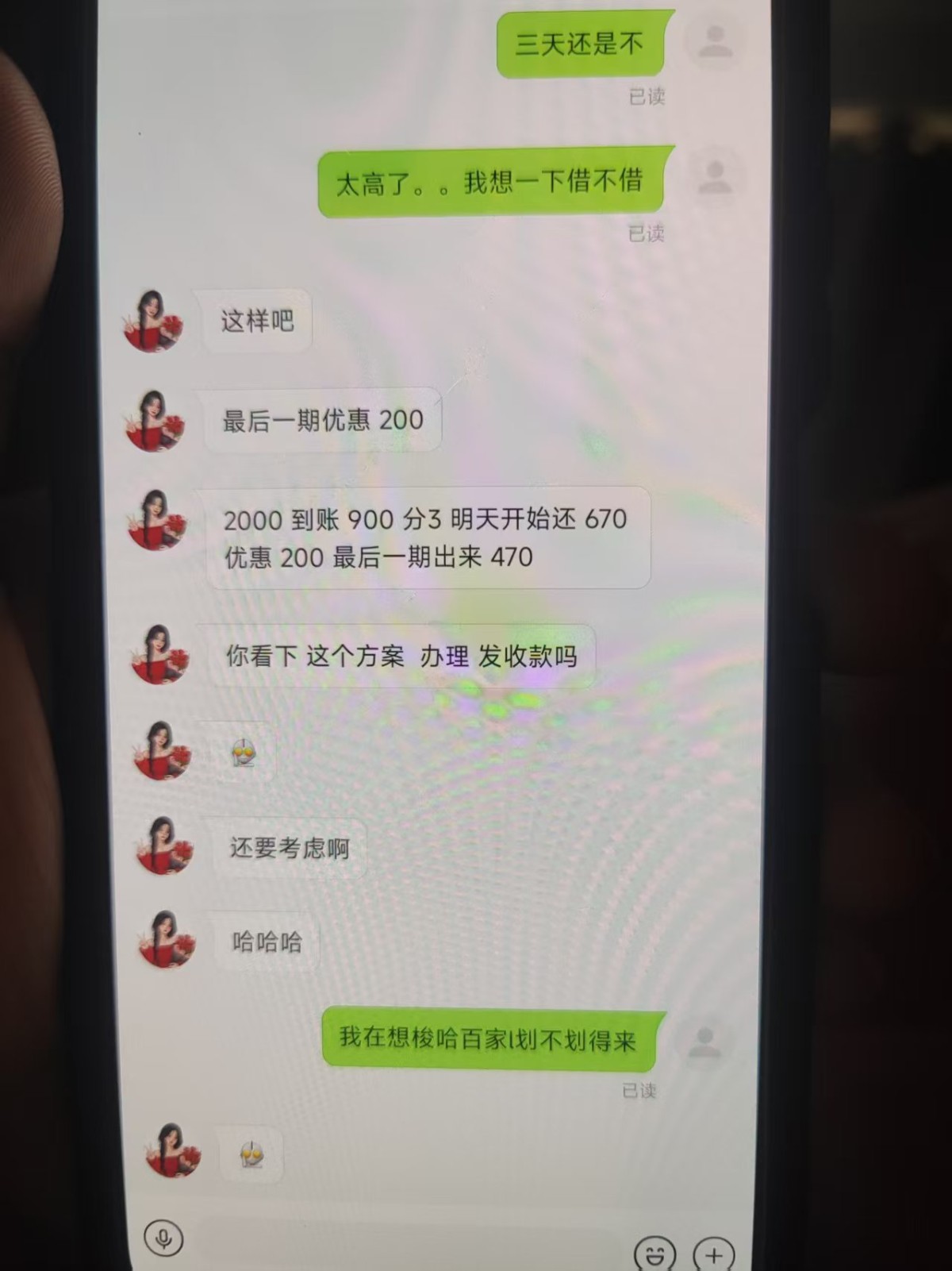 有没有可能这是给你打黑钱,你还的时候就是干净了。10个人有3个人还他们就不亏,相当于0成本洗米?