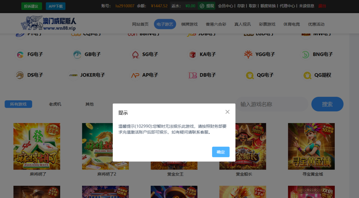 我也接到电话了 直接给我送288.我想正常台子送个18,都必须得捕鱼了,送58就要黑款了,288怎么可能能出。我还用送的28打了一会儿麻将糊了,提款,的确是,让充值。我那个网址改了叫wn999,一开始老哥网还看不到,然后改搜wn,就搜到这里了。你们真的无语 白送288也信啊