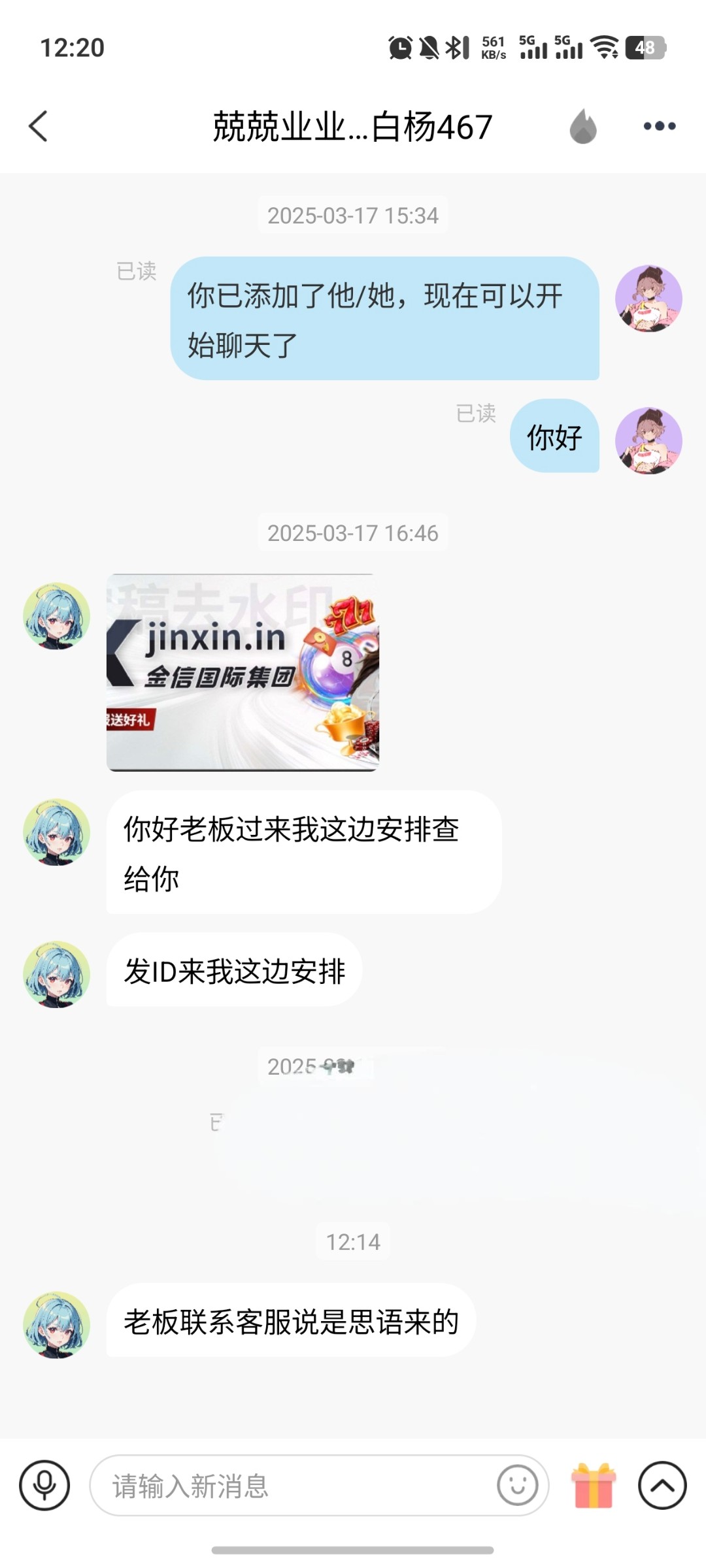发这种有什么用 发ID给思语的 又不是找客服