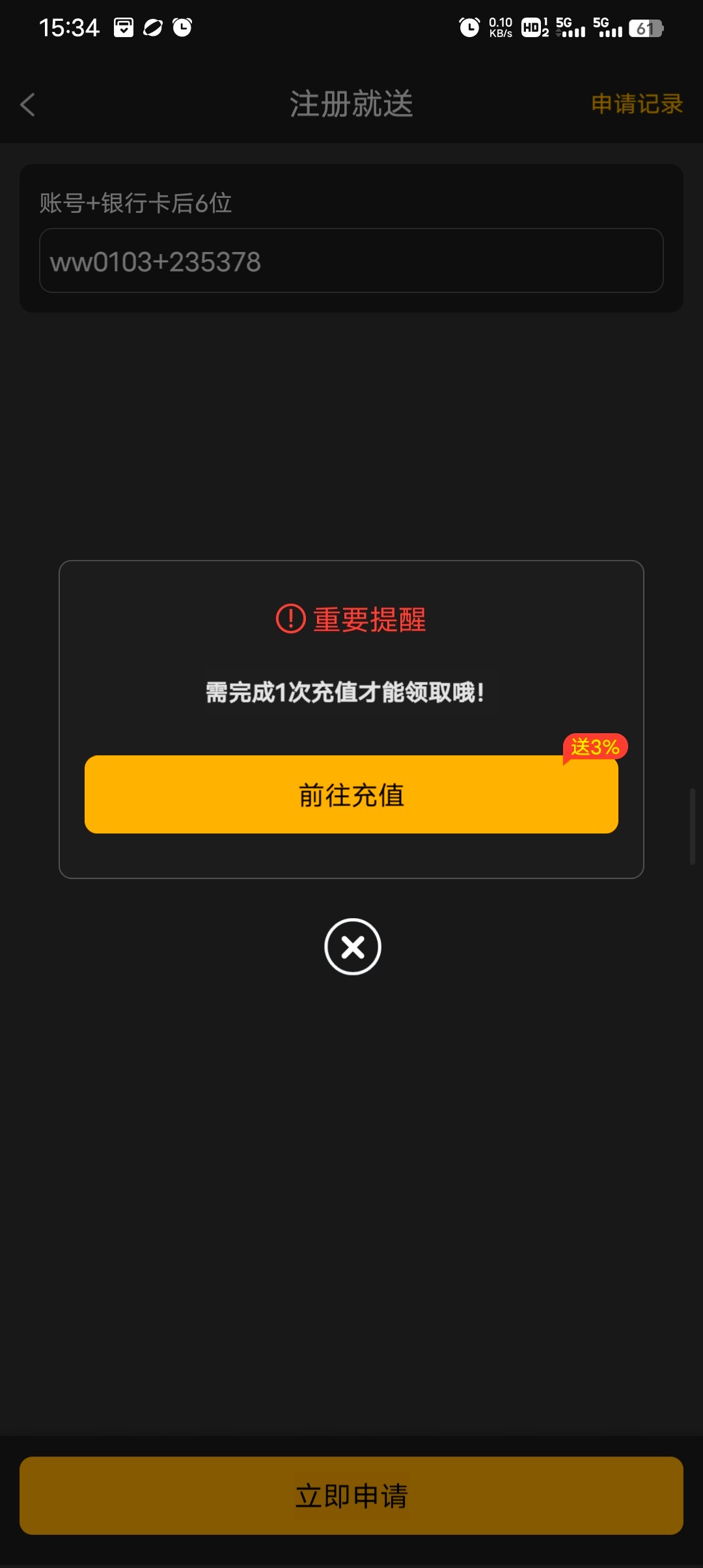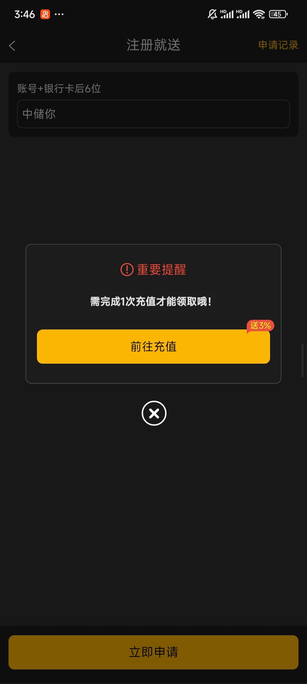 要充值才能申请