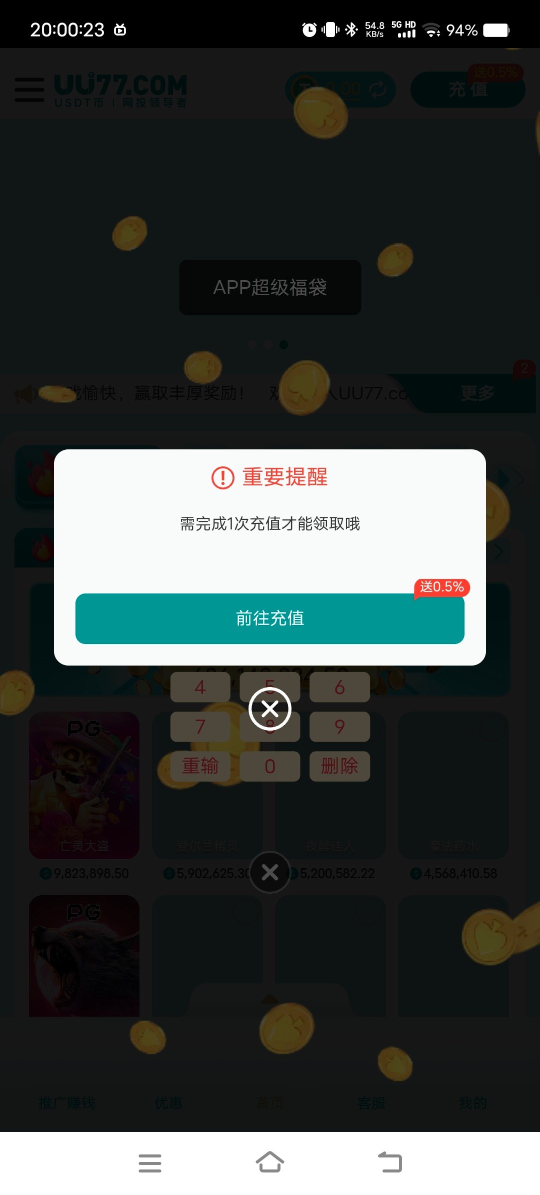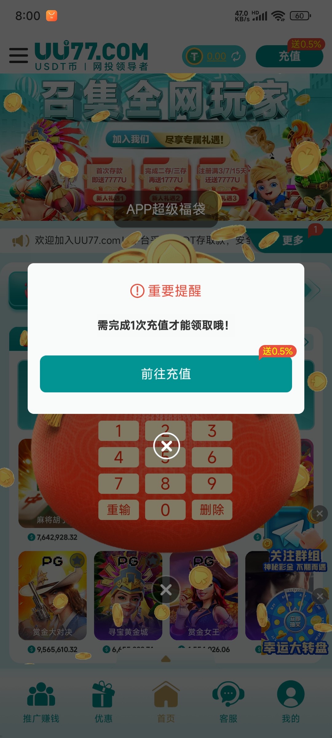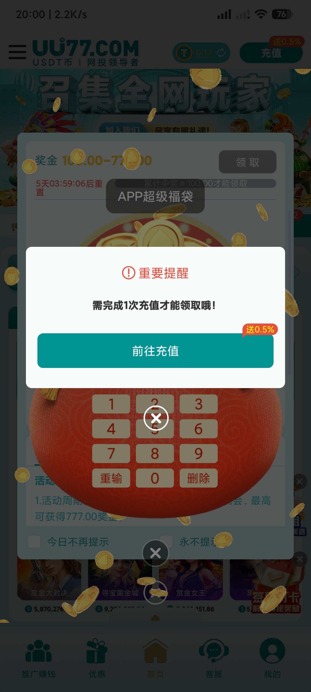 没充值不能抢的