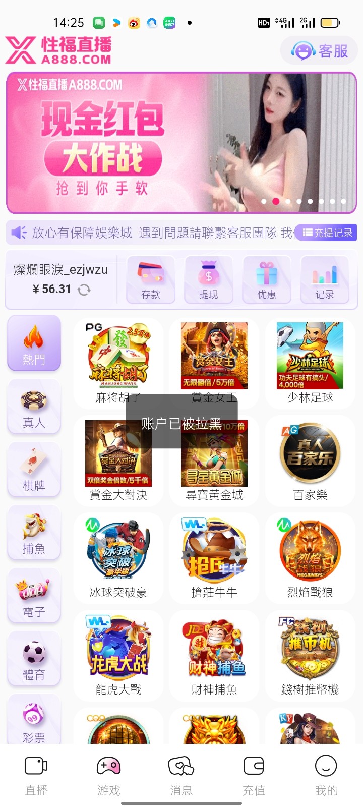黑台子,以后不要发了,行吗?我登录进去看直接有300,我点击游戏显示拉黑,才想起来,以前送的打到300提现秒拉黑账户