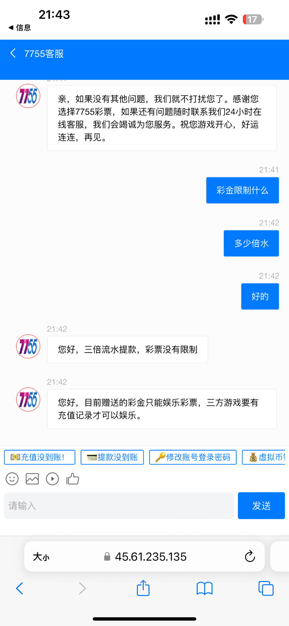我是收到短信注册的 找客服领取 彩金只能玩彩票