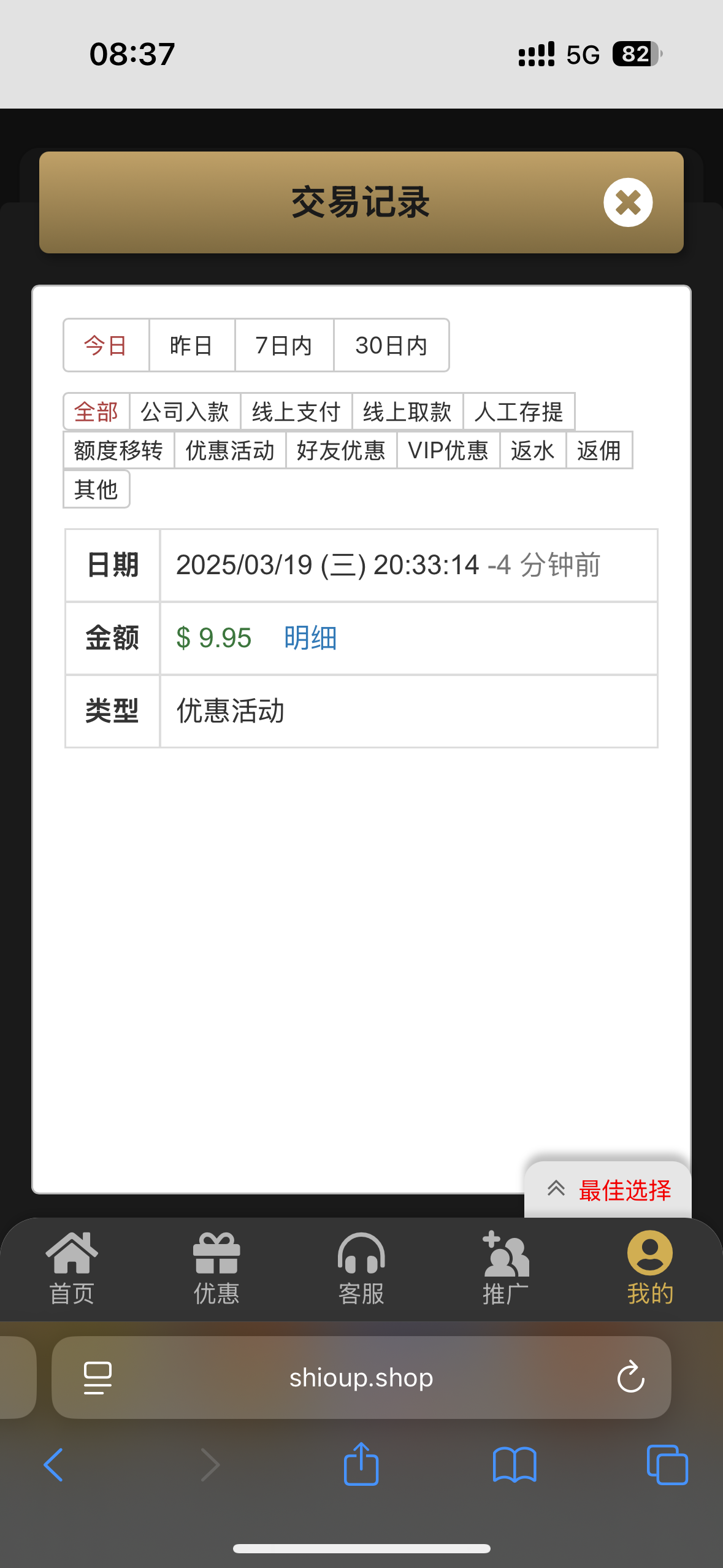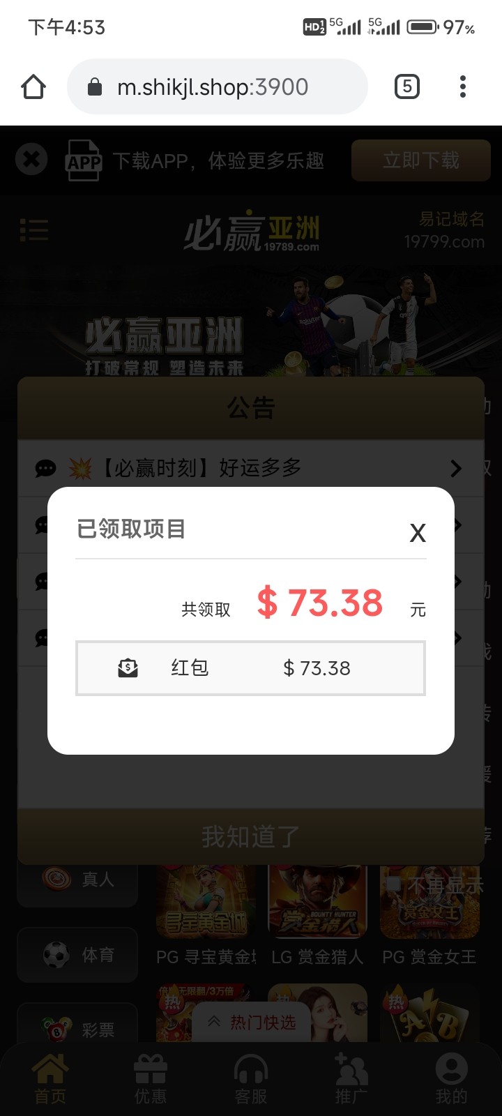 登陆就有弹窗给我了9.95 很早很早注册的