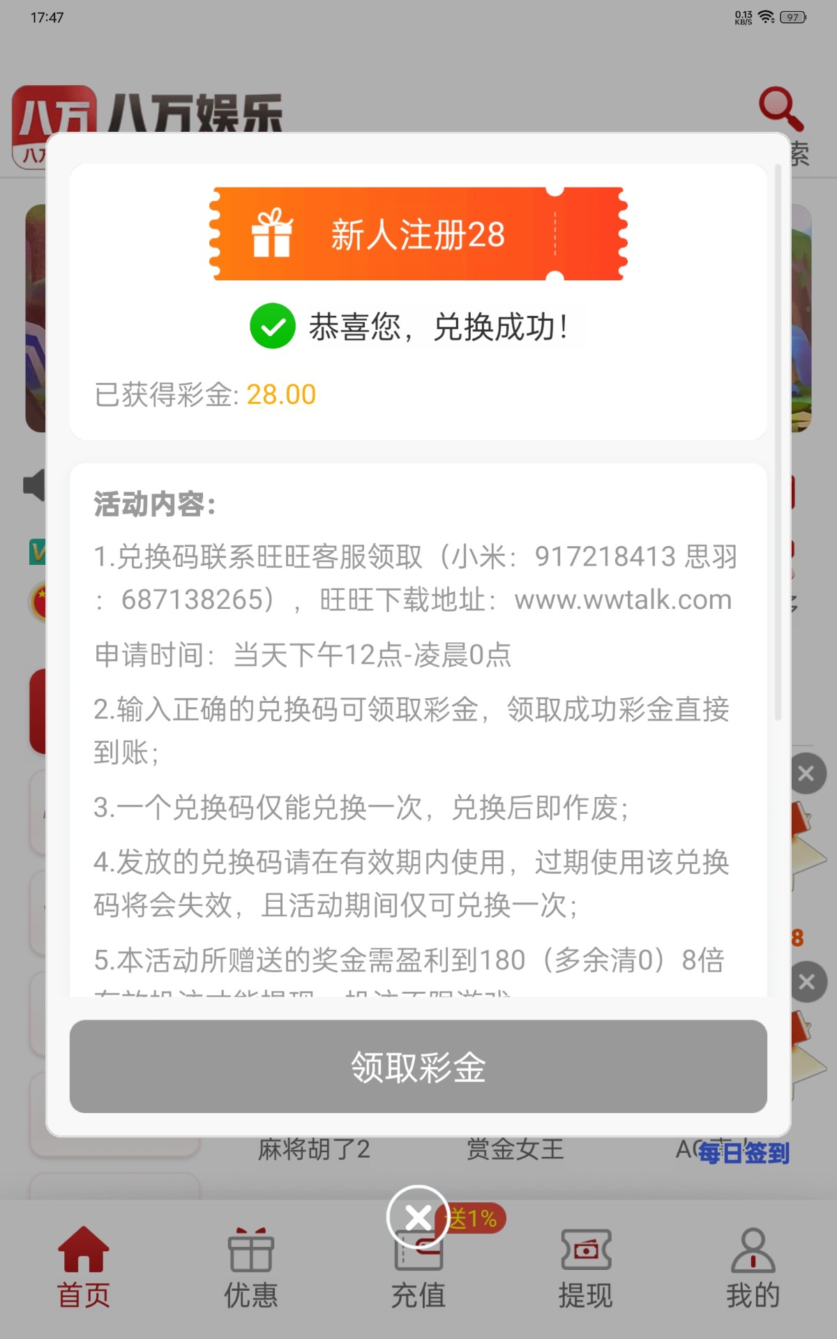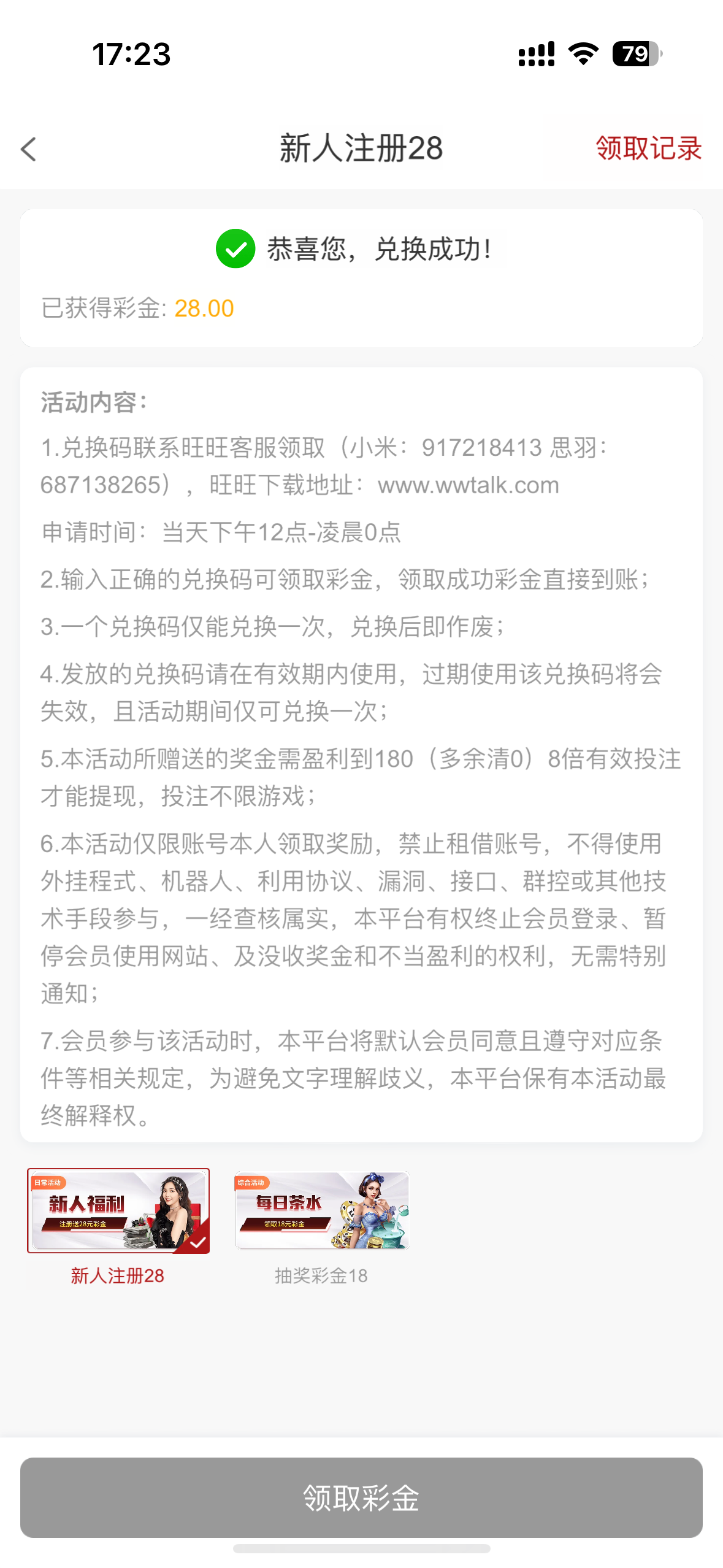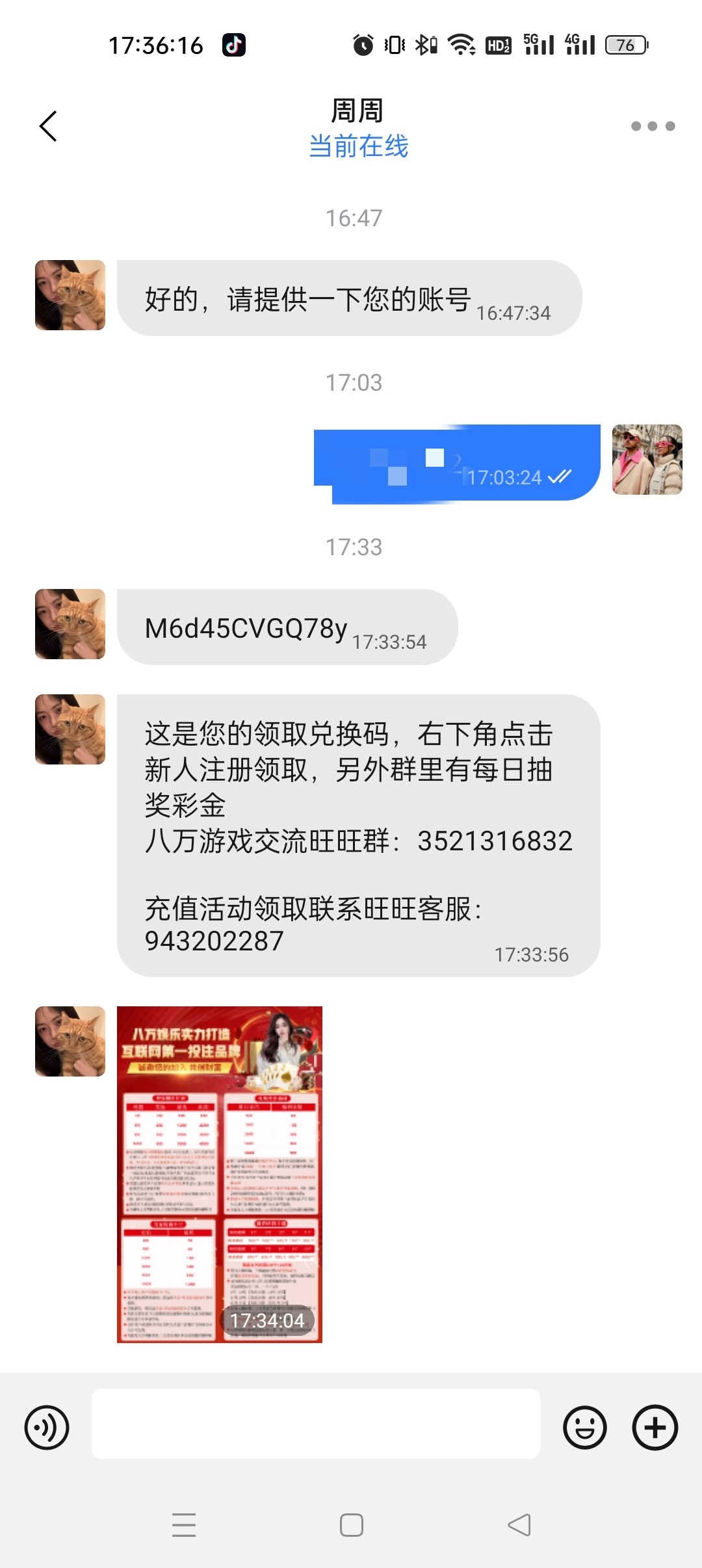 注册送28 联系旺旺领取 地址 8wan.cc 要推荐图的话直接发下面这种红色图给他