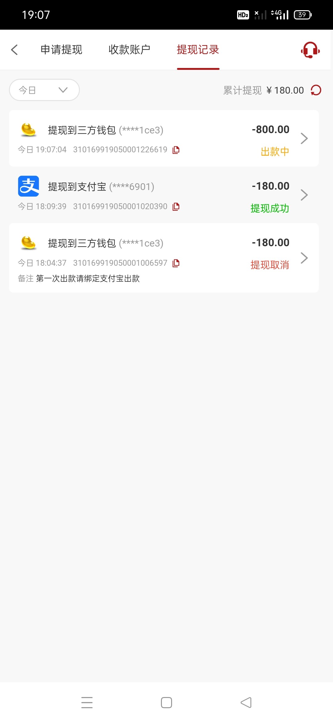 到账了