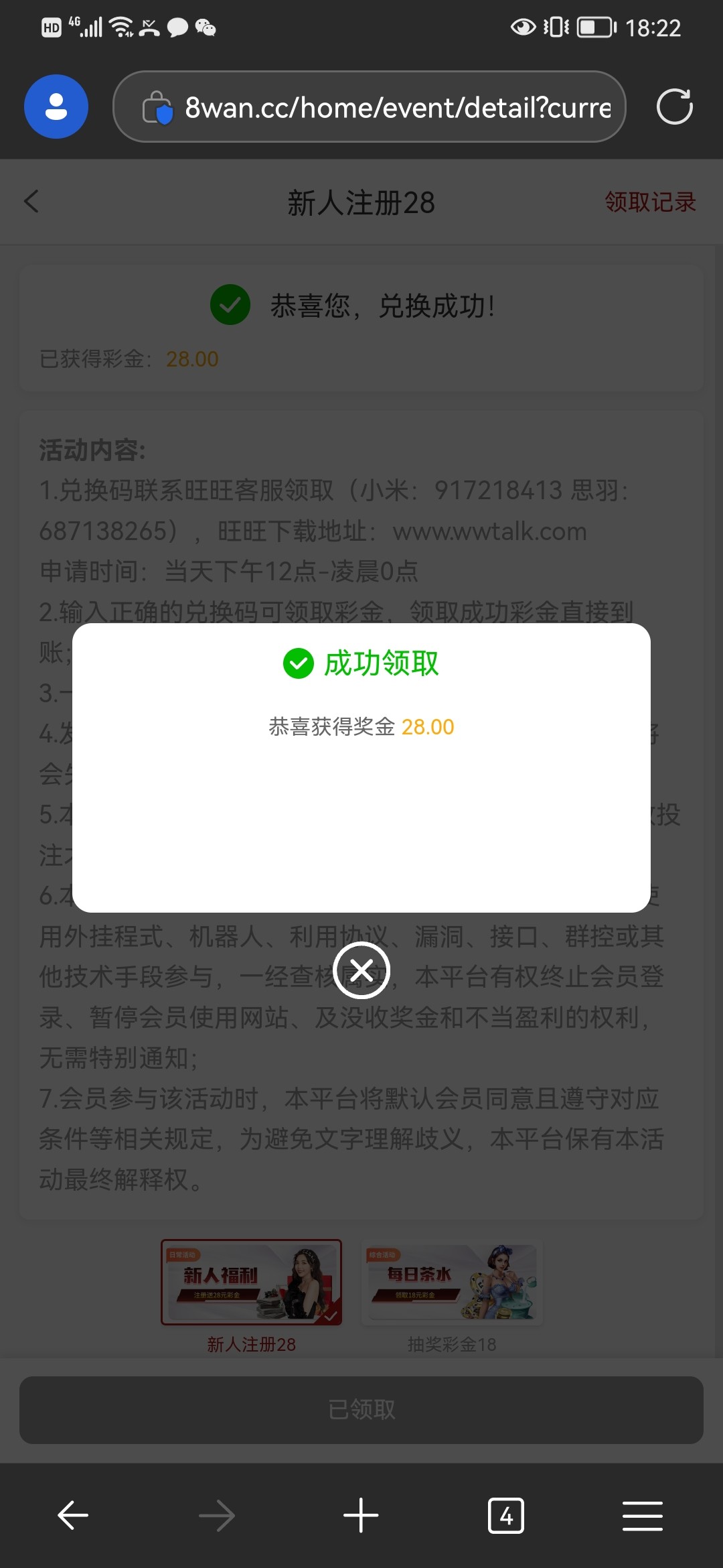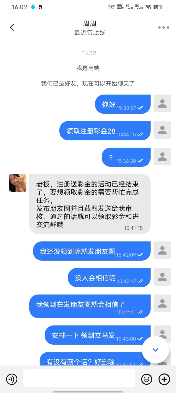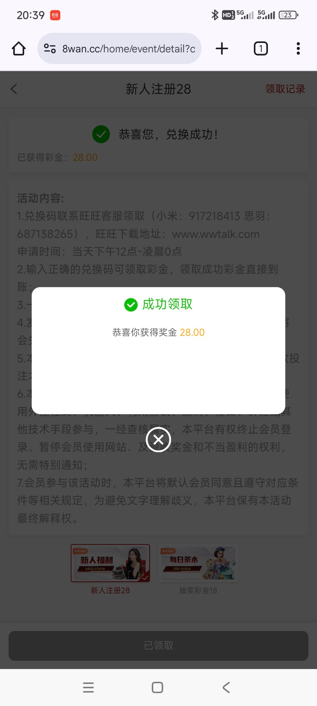 活动解除,但是可以打广告申请 我是送了 去玩AG电子一飞冲天 十分钟上了181 直接提了,五分钟左右秒到了