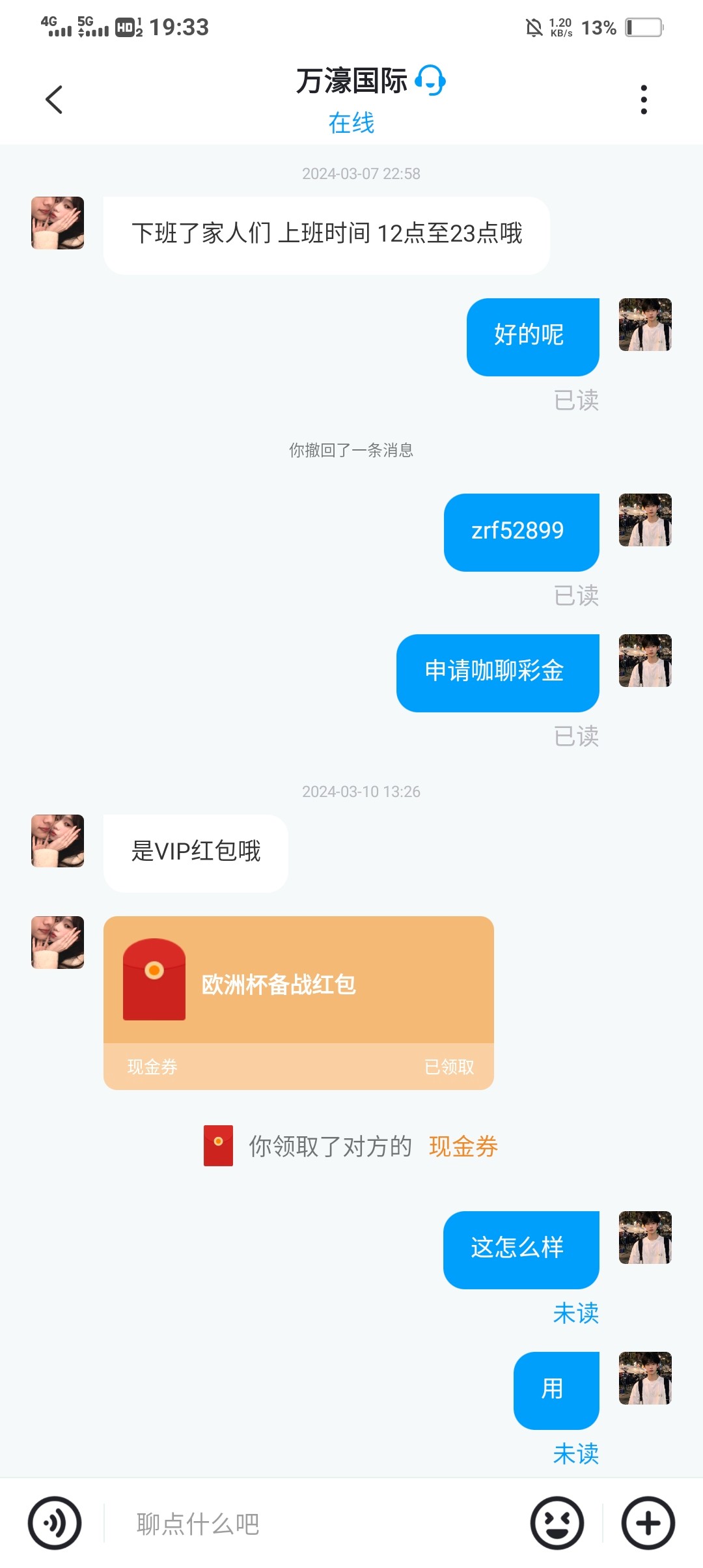 3.10号万濠国际老玩家,vip1以上找咖聊客服领取免费彩金 提前给老哥们分享,提前加好咖聊客服时间到了领取即可 多多宣传支持老哥社区lg00.cc