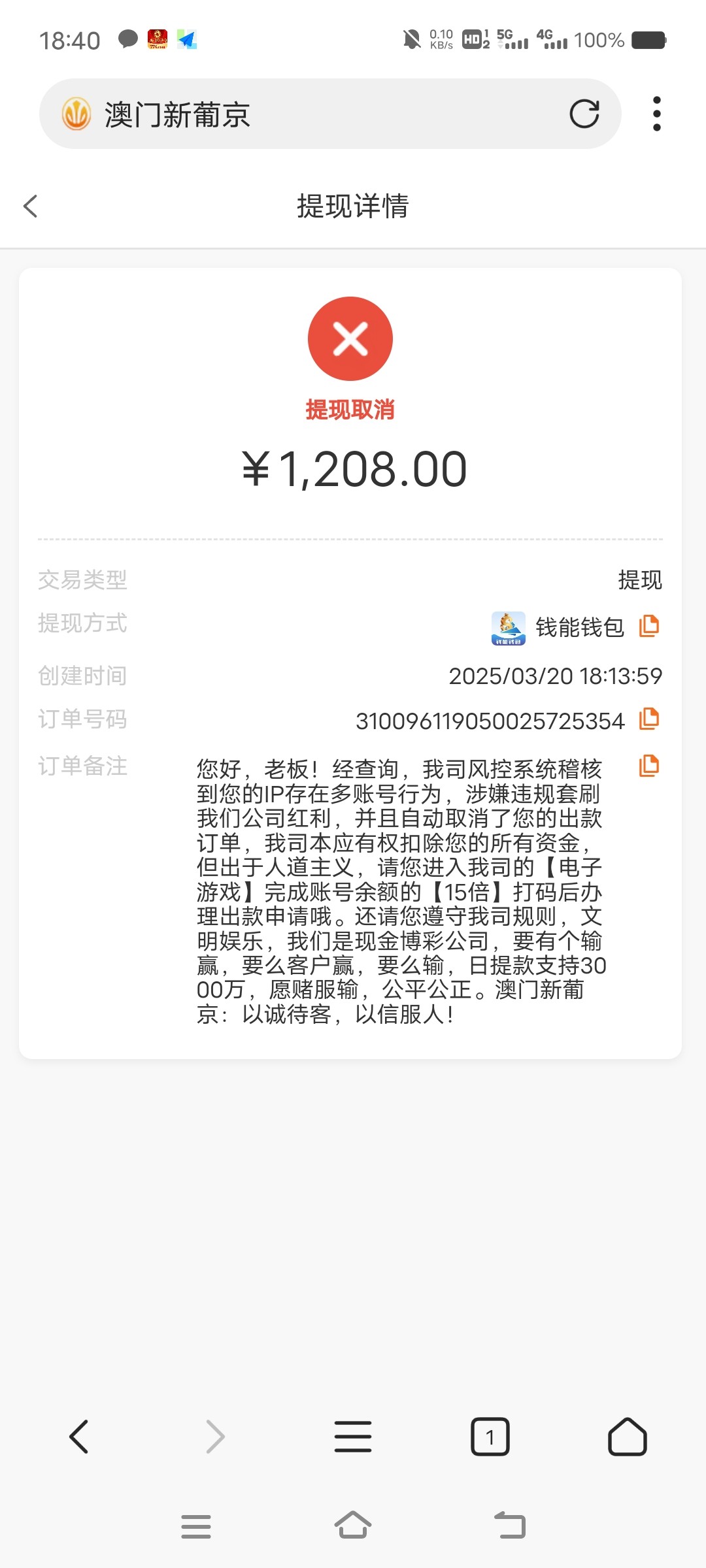 特邀打到500,怕被黑故意充100,结果越打越多,以为稳了,结果给我黑1200了,真是曹他妈的。保留100本金还要打15倍流水,狗庄我草泥马