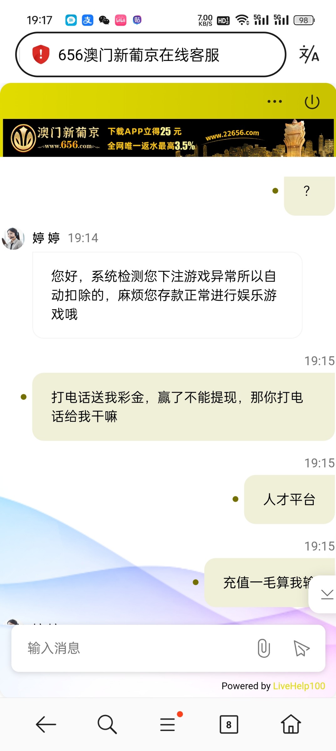 656电话彩金打到400出款没收