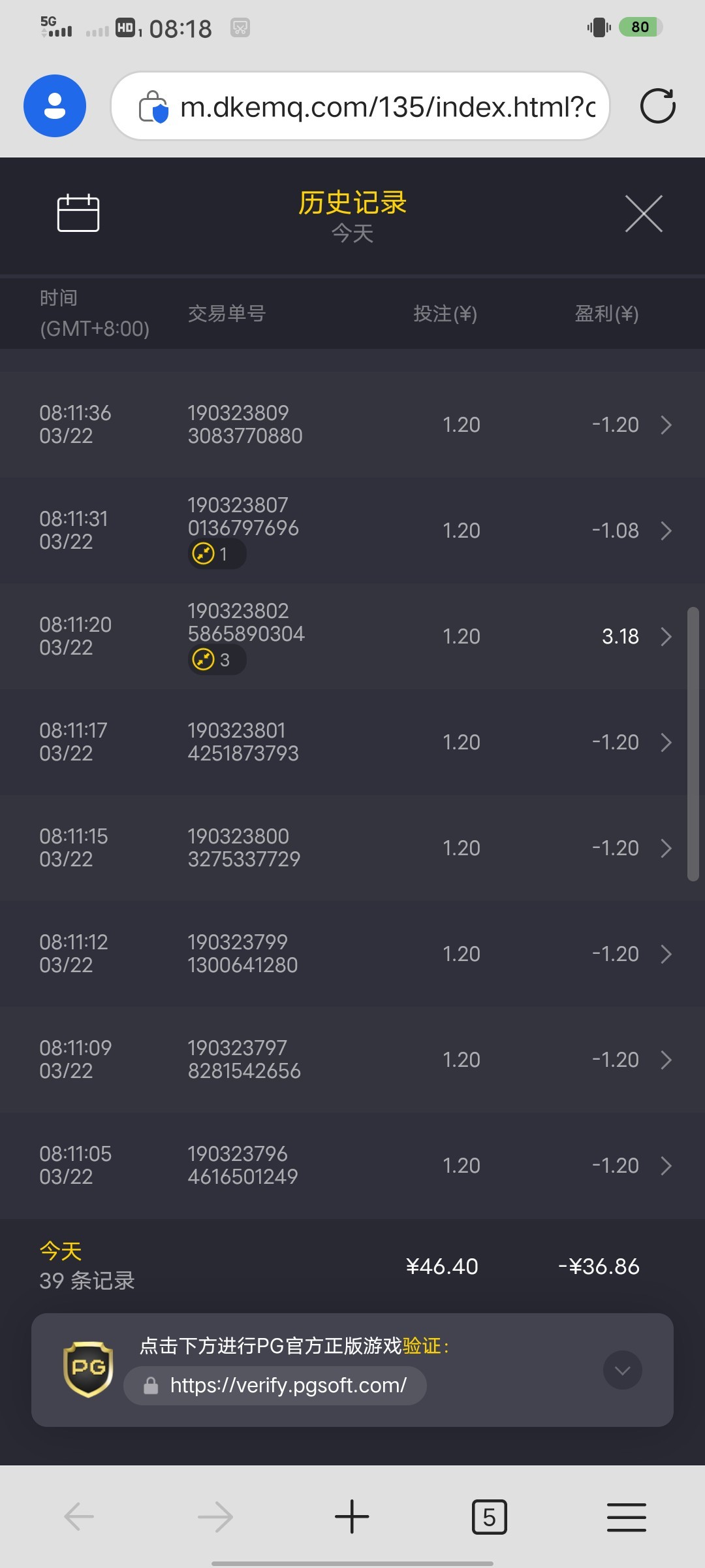 8毛打到180,加注就空转完