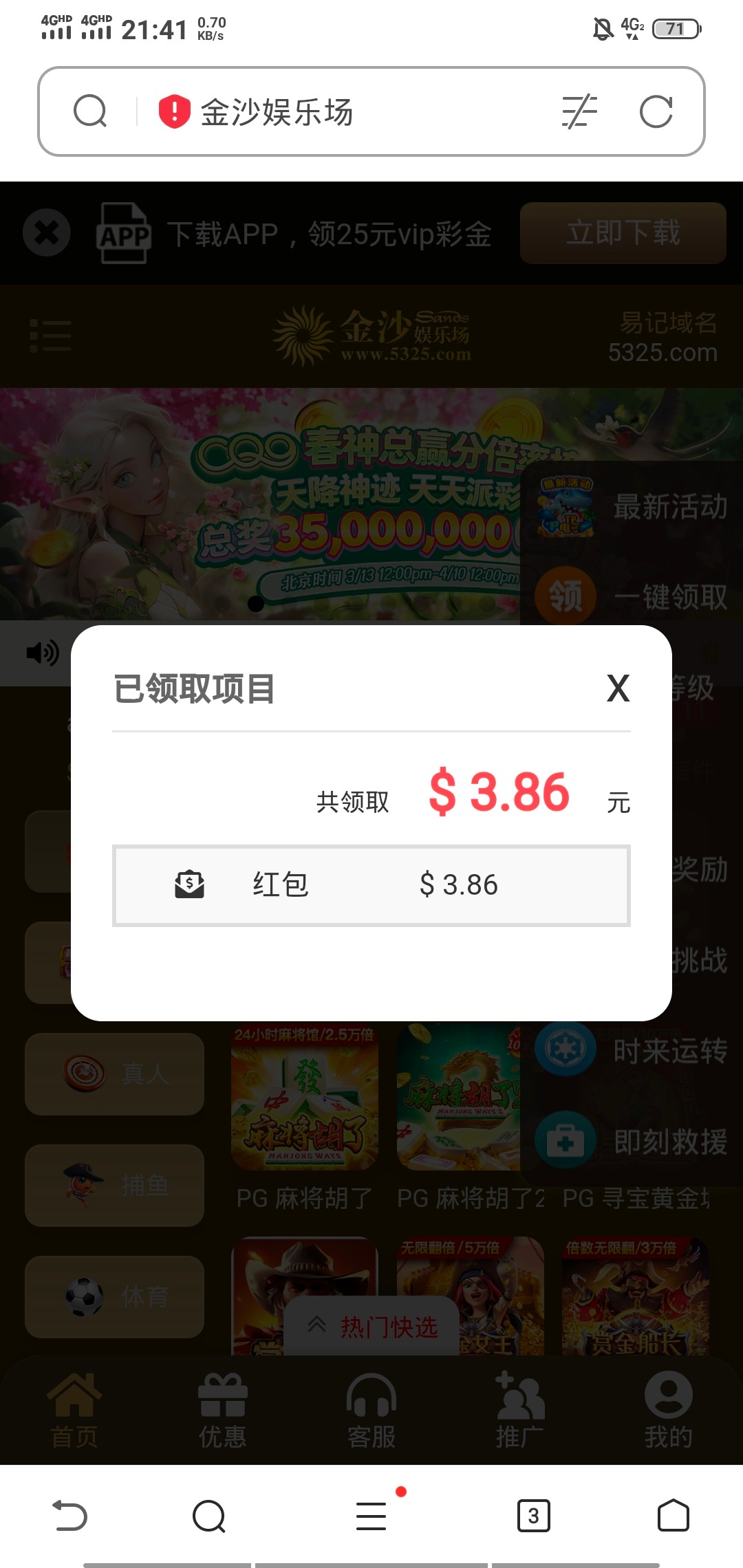 @杀死比尔 ,跟你一样啊,以前开始玩的时候就是这样充值了几百,抢了几天红包,就封优惠