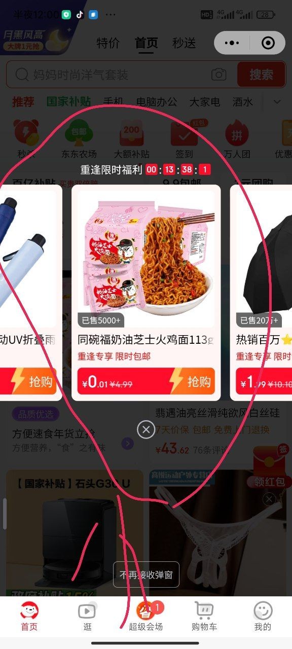 点微信-发现-购物,进去之后几秒后自动弹出来的,如果没有显示那就无视,往后滑还有很多东西,帽子啊,娃哈哈,选中直接购买,别点那个交叉了,退出了就不会再有显示