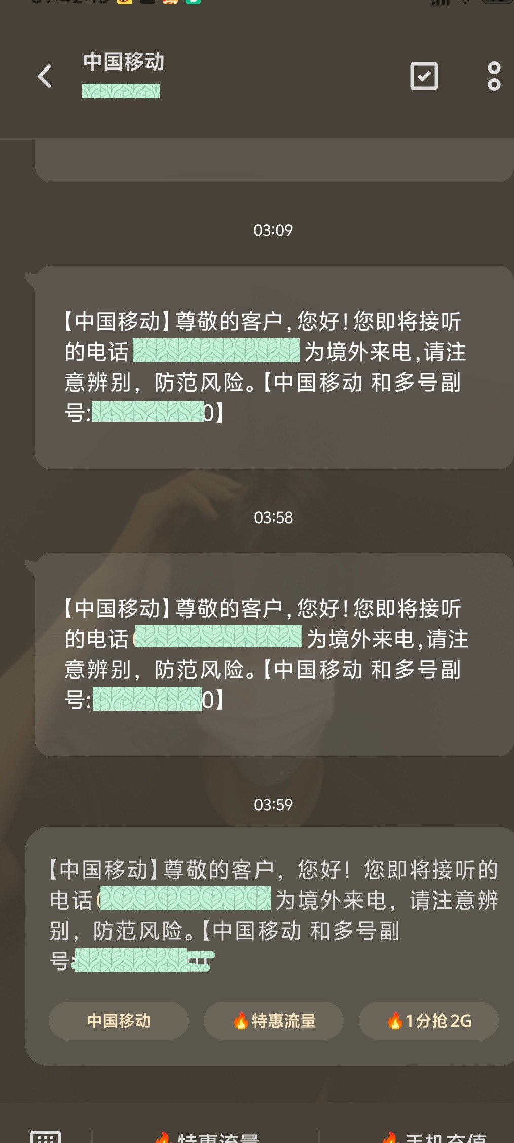 去微信公众号,中国移动防骚扰去看下国际境外来电拦截开了没