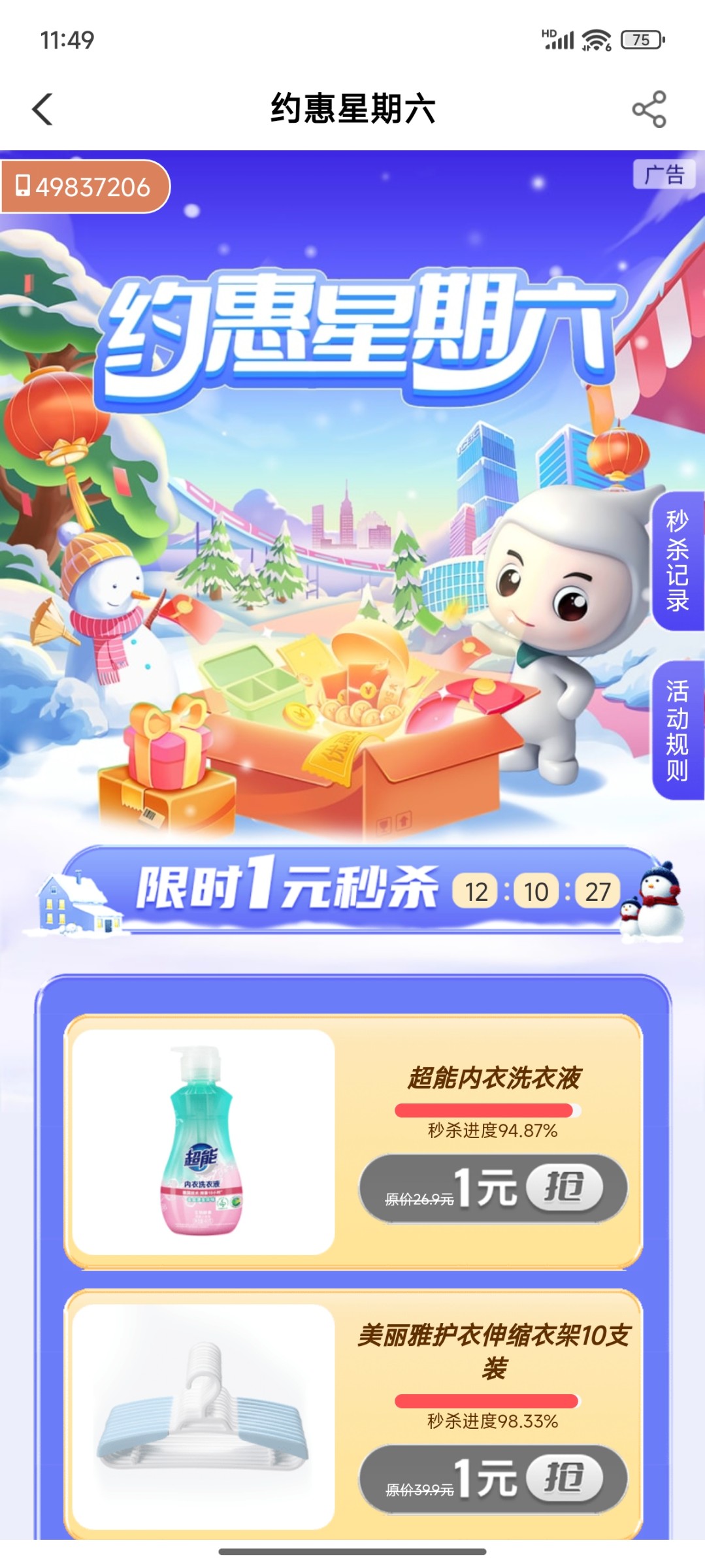 打开手机农业银行APP点右上角消息然后再点优惠消息看到约惠星期六然后1元秒杀微信10元立减金就行了