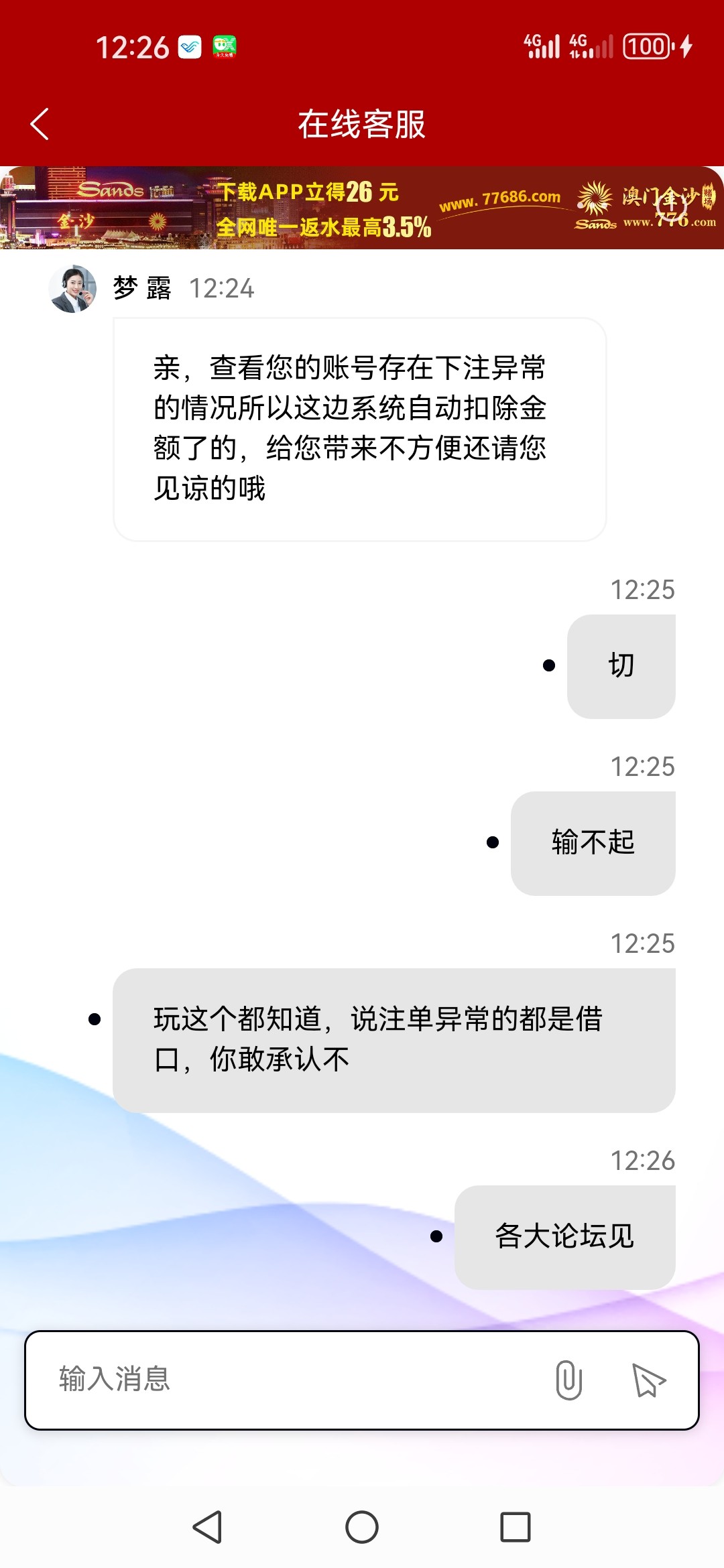 大家注意了,澳门金沙776,APP彩金打到300提款直接扣除,说注单异常哈哈,典型的黑狗一个,大家一起