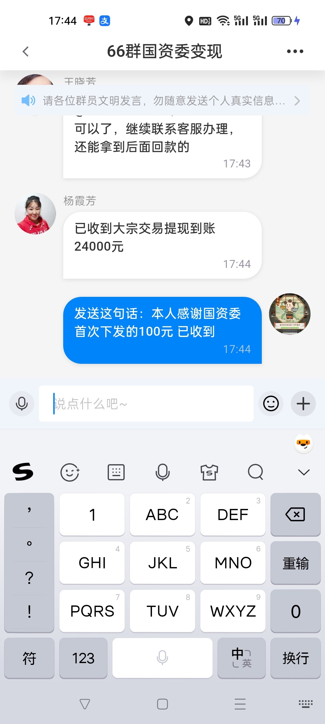 我去年8月份也是搞了100,后面给我打了三笔99.99,银行卡到现在都没有解封,都是他们让受害人打的
