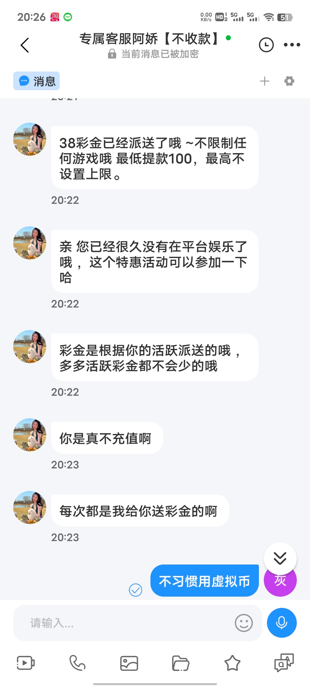 你是真不充啊