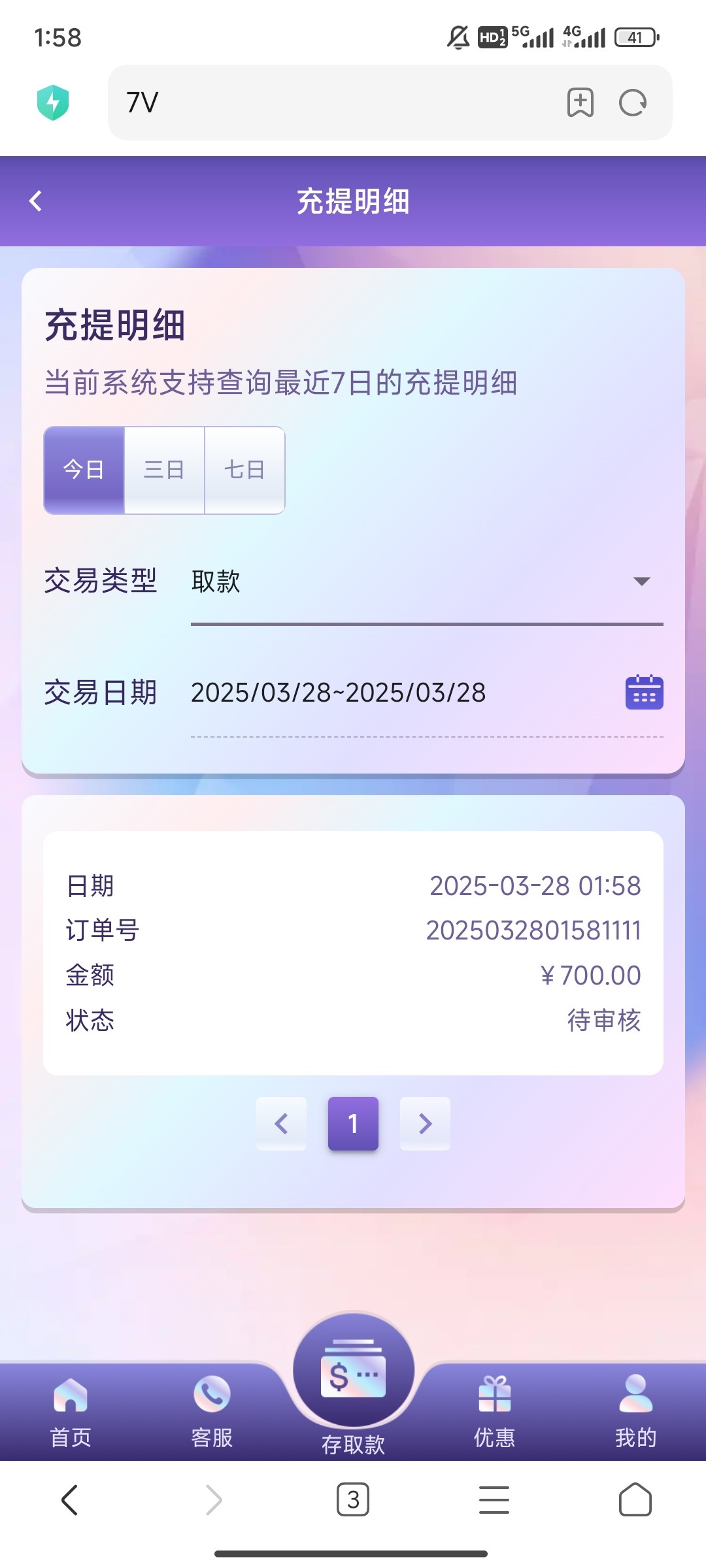 去了几次一直说不在名单,后面上去一看给了58,提了700看看能不能到账,麻将有点水