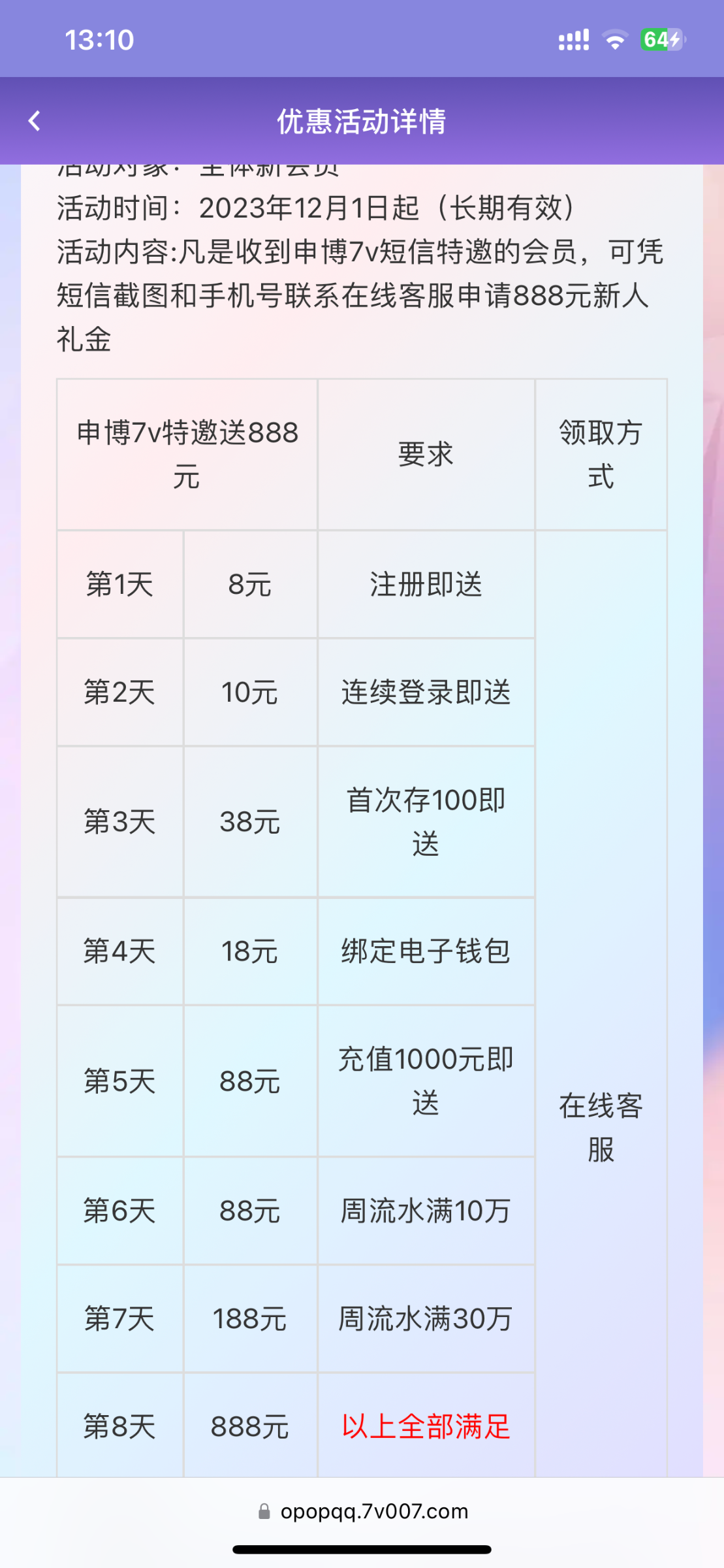 凤凰彩票是特邀的去找客服申请,我刚开始也是不送后面隔天就找客服送了,然后申博7v刚开始一样,vx特邀电话特邀就是不给,后面昨天重新注册了一个ok那个聊天软件,申博的,找客服申请直接给了,申博特邀还有注册彩金和连续登录彩金,这个直接联系客服就行,这两个链接自己找,前两天帖子有发的,申博建议打真人,电子一点水没有,88出了300多