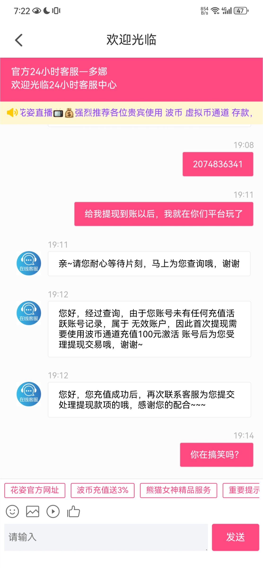 黑逼台,8打到120不给提,开始说充值100,现在又变成充值300,黑台