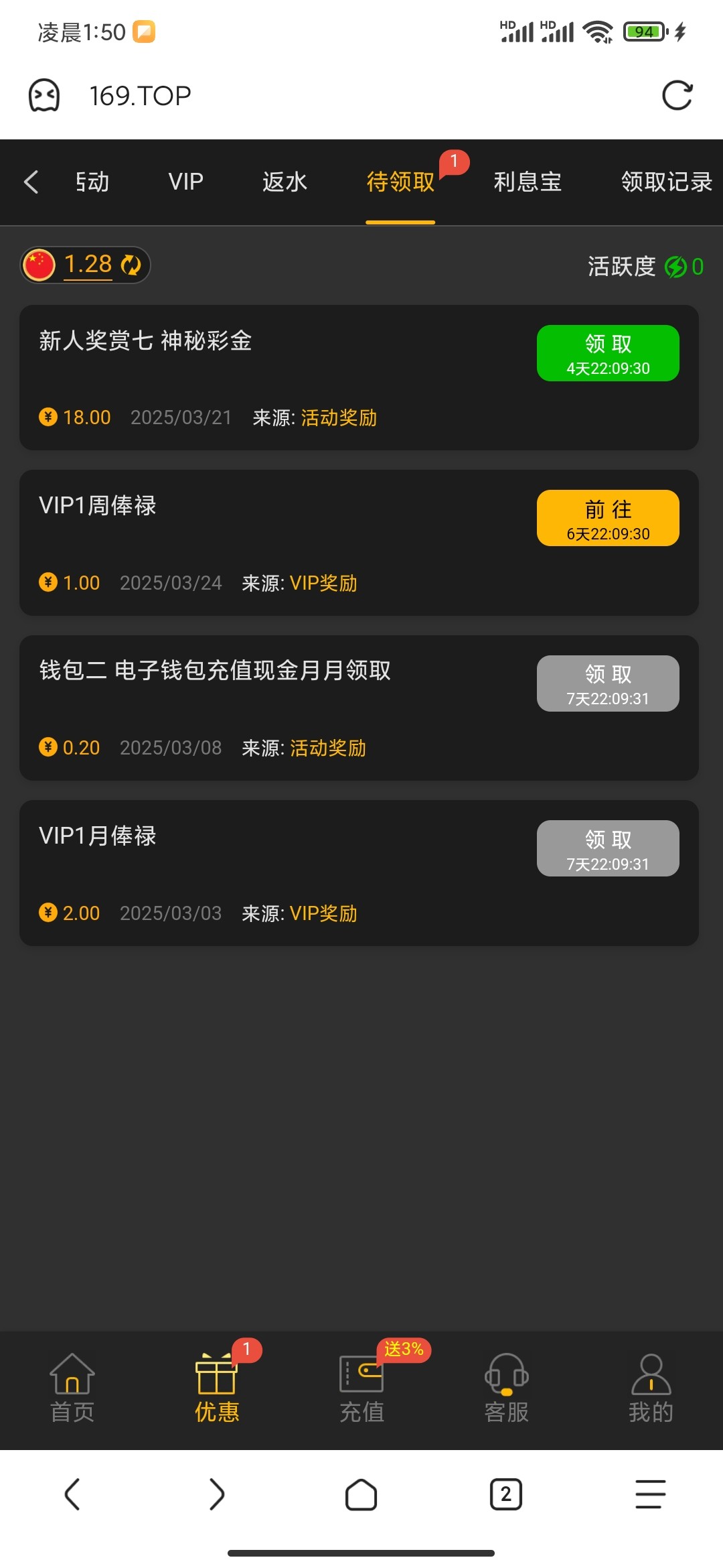 这个是神秘彩金,你都v1了,5万+流水,应该充了几千,反正我没有,充了两次打了两杯流水不到,垃圾台平时没看到任何福利彩金