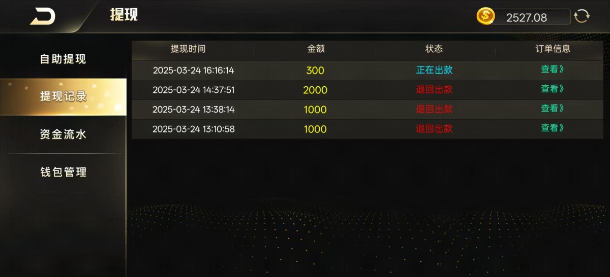 这个模板提款/提款时的余额,不能超过7/800,一般小几百还是好出,系统秒的,上了1000就是审核了,看你的充值或者值不值他们出1000